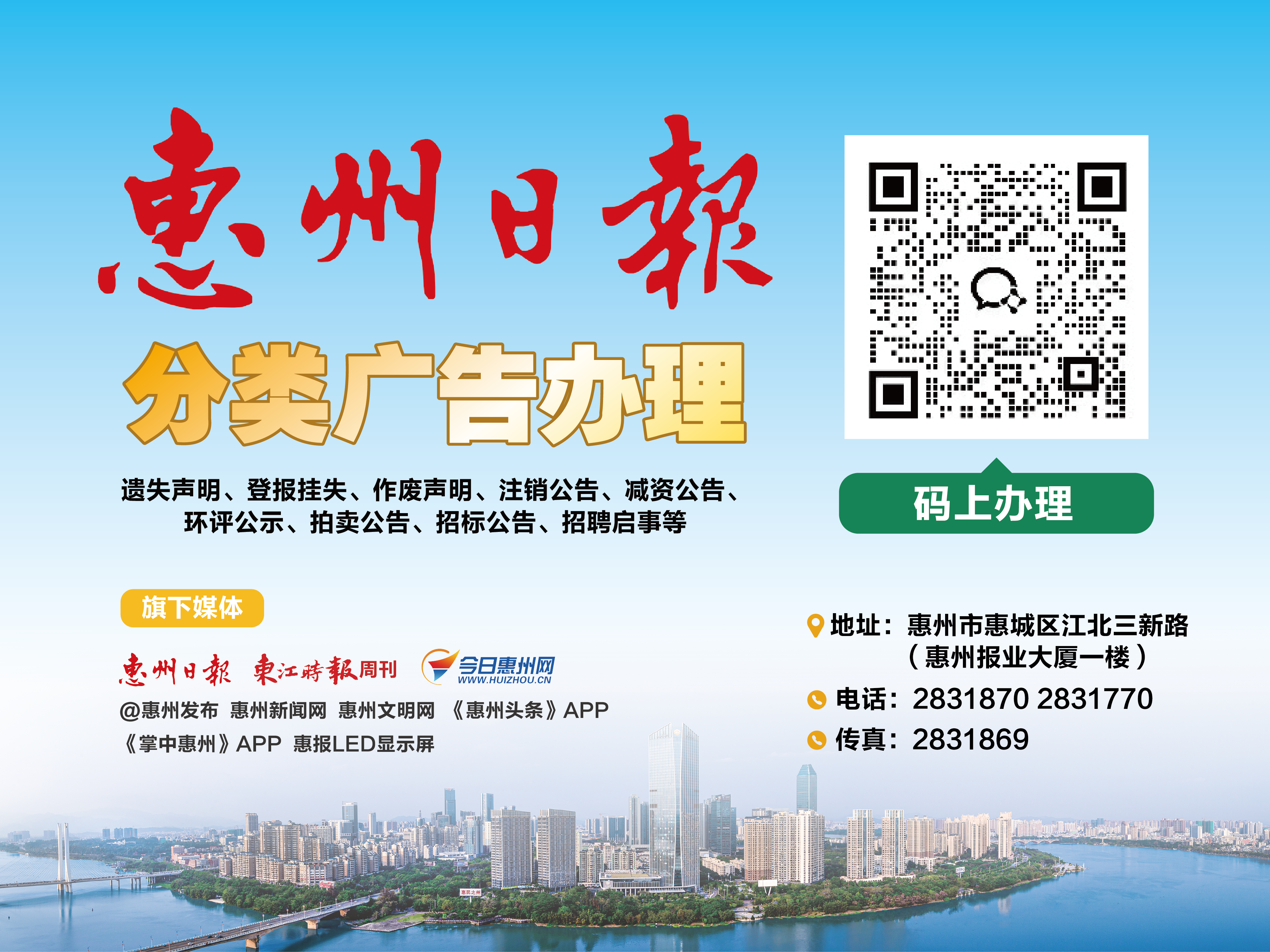 據(jù)悉,為了方便各單位和個人辦理廣告,減少來回奔波,同時推進無紙化辦公,依托企業(yè)微信平臺,惠州日報全媒體品牌運營中心推出“網(wǎng)上辦理分類廣告”業(yè)務,廣大客戶只需掃碼添加專屬企業(yè)微信號,根據(jù)提示收集好相關證件材料并掃描上傳,根據(jù)客服的指示操作即可。