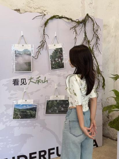 步入野島生活社區(qū)的快閃空間,首先映入眼簾的是一面由茶樹枝與定格了南山風(fēng)采面面、照片組成的 “記憶墻”。樹枝來自海拔 600 米的大南山茶園,每一道紋理都記錄著嶺南季風(fēng)的吹拂;電視里正循環(huán)播放著茶山四季的流轉(zhuǎn) —— 春有新綠破土、夏見云霧漫坡、秋遇豐收的果實(shí)、冬觀霜露凝枝,茶與土地的羈絆在此隨光影流動(dòng),更顯鮮活。
