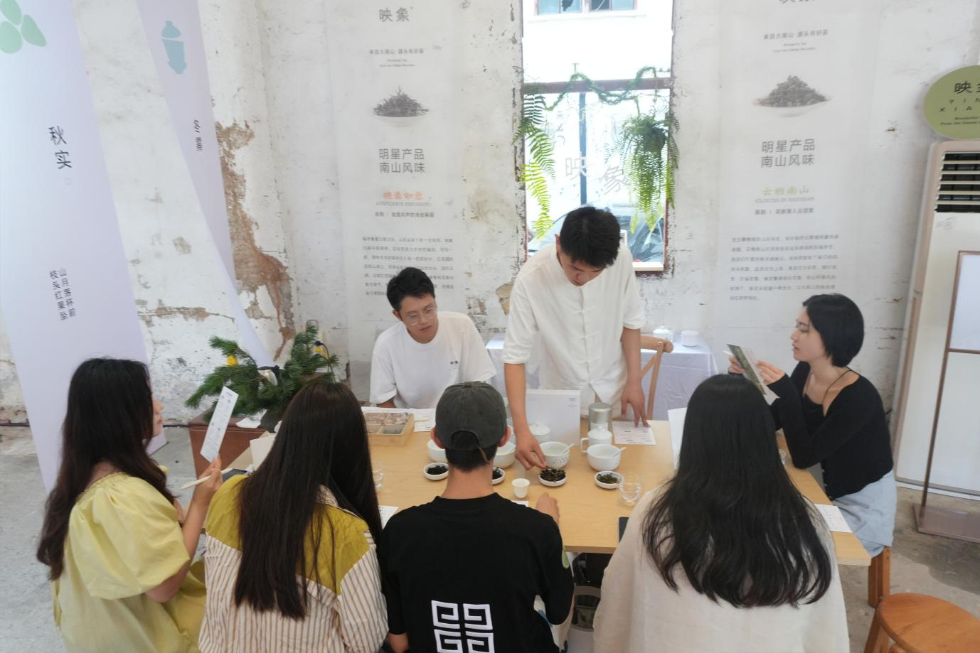 “映象茶的每一片茶葉都帶著惠州的基因! 品牌主理人楊倩怡在快閃店落地的第一天上介紹到,大南山茶園位于北回歸線穿過的生態(tài)屏障區(qū),常年云霧繚繞,土壤中富含的微量元素與東江流域的濕潤氣候,共同孕育出茶湯里獨(dú)有的 “嶺南甘韻”。展覽中,現(xiàn)場時(shí)刻都在進(jìn)行的“杯測活動(dòng)”直觀呈現(xiàn)了“嶺南甘韻”:大南山滋養(yǎng)而成的茶葉在同樣的沖泡手法和沖泡條件,沖泡后色澤、香氣的細(xì)微差異,被放大成可視化的藝術(shù),讓觀眾讀懂 “一方水土養(yǎng)一方茶” 的深層邏輯。