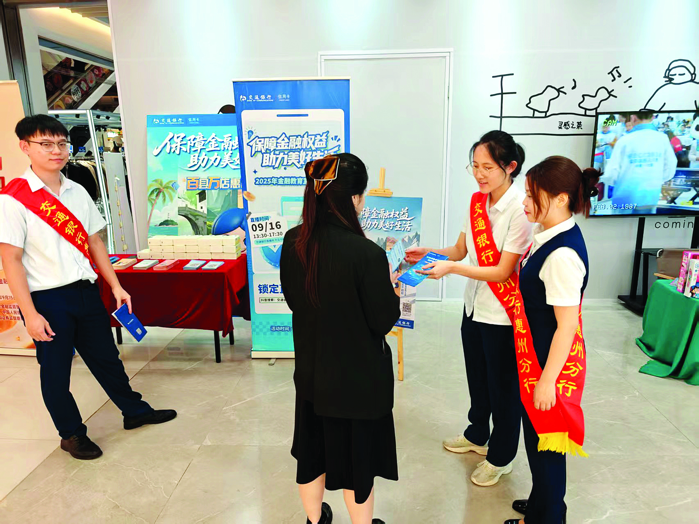惠州日報訊 (記者伍磊)為深入貫徹落實國家關于金融消費者權益保護工作的決策部署,切實提升社會公眾金融素養(yǎng)和風險防范能力,9月17日,交通銀行惠州分行在惠州華貿(mào)天地舉辦金融教育集中宣傳活動。舉辦此次活動是交通銀行惠州分行在2025年金融教育宣傳周期間的重要舉措。宣傳周期間,該行緊緊圍繞“保障金融權益 助力美好生活”主題,積極依托“百縣萬店惠民生”活動,組織開展了一系列金融教育宣傳活動,以實際行動踐行“金融為民”理念,讓金融服務更加貼近百姓、更有溫度。