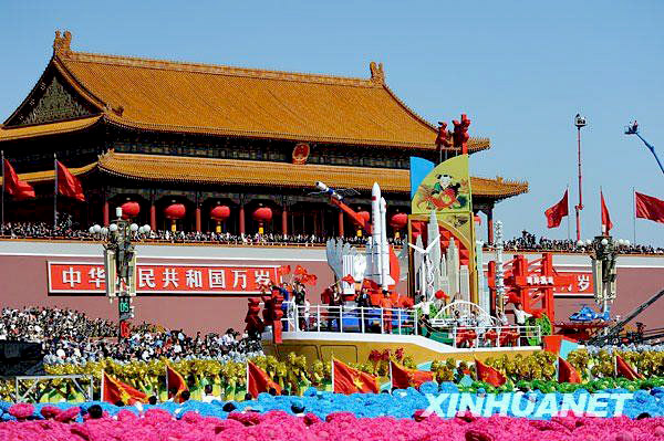 我公司制造的慶祝國慶60年“渤海號”彩車經(jīng)過天安門前,經(jīng)受黨和國家領(lǐng)導(dǎo)人檢閱