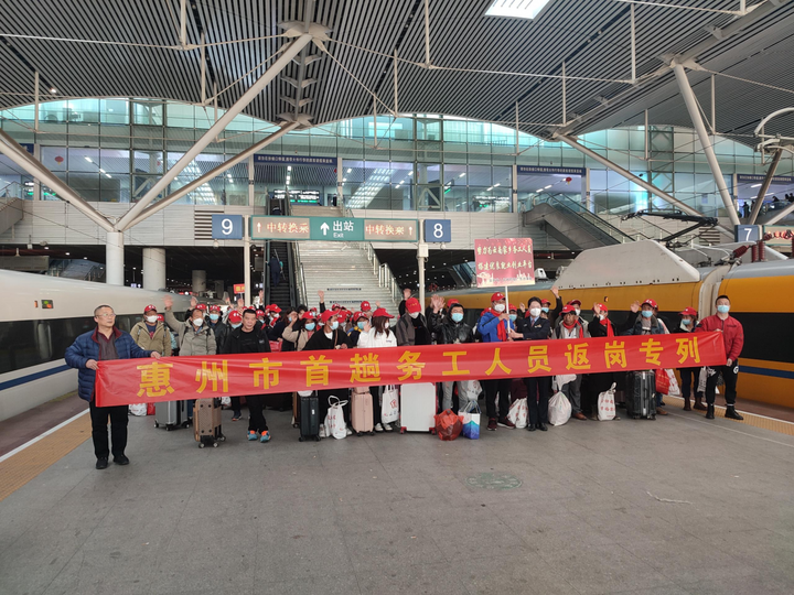 1月30日(初九)下午5時許,一趟搭載著300余名云南籍務(wù)工人員的“惠州號”專列G2924次順利抵達深圳北站,這是今年惠州首趟務(wù)工人員返崗專列,也是繼1月27日首架黔西南州務(wù)工人員返惠返崗包機之后的又一關(guān)愛務(wù)工人員、保障企業(yè)復(fù)工復(fù)產(chǎn)的舉措,將持續(xù)推動惠州大規(guī)模有組織務(wù)工人員節(jié)后有序返崗一波接著一波,一浪高過一浪。列車到站后,該批務(wù)工人員在惠州市人社部門的統(tǒng)一組織安排下,乘坐大巴安全返回惠州各企業(yè),實現(xiàn)了從“家門口”到“車門口”到“廠門口”的精準接送,保障企業(yè)的節(jié)后用工需求。