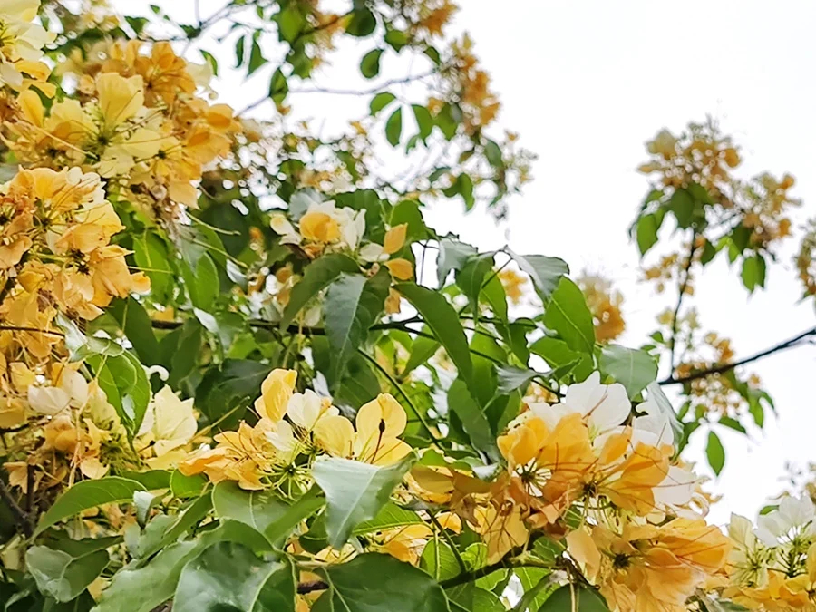 清明時節(jié),人們紛紛來到陳公堤踏青賞花。漫步堤岸,層層疊疊的魚木花壓滿枝頭,遠(yuǎn)遠(yuǎn)望去,宛如云蒸霞蔚,為過往的市民游客送去幸福、吉祥、如意。清風(fēng)拂過,攜來陣陣淡雅清香,花瓣緩緩飄落,優(yōu)雅浪漫。細(xì)賞魚木花,雪白和金黃的花瓣輕盈舒展似蝴蝶展翅,紫紅色的細(xì)長花蕊像蝴蝶觸角,整一個仙氣飄飄。
