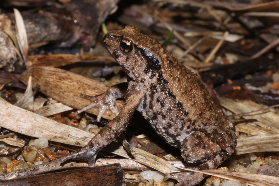 “這種蟾蜍曾經(jīng)被記錄為隱耳溪蟾,這次我們通過分子生物學(xué)和形態(tài)學(xué)上的差異將這個物種描述為一新種!敝猩酱髮W(xué)高級工程師王英永介紹,本次發(fā)現(xiàn)的廣東溪蟾體型較小巧,成年雄性體長43.2–43.3mm,成年雌性體長48.5–52.4mm,與哀牢溪蟾并列蟾蜍屬已知最小物種,也因體型嬌小這個特征,該種的種加詞被取為“exiguus”,意為“小的”。除此之外,廣東溪蟾還具有以下特征:鼓膜隱蔽;耳后腺小,呈橄欖形;不具附褶;體背具淺色脊紋;繁殖期雄性第I、第Ⅱ指背側(cè)及內(nèi)側(cè)具白色顆粒狀婚刺等形態(tài)學(xué)特點,可區(qū)別于同屬其他物種。