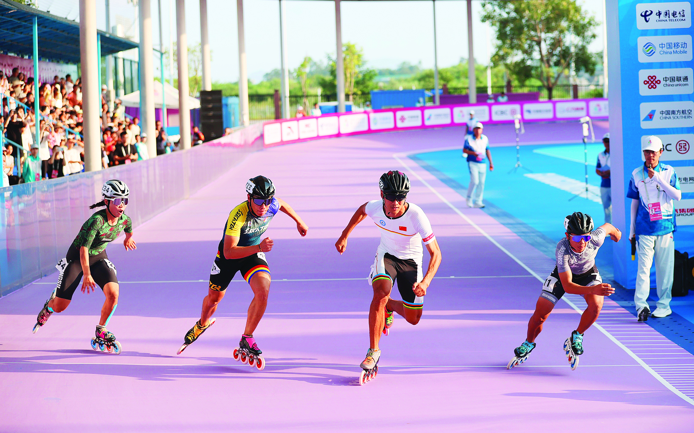 第十五屆全運(yùn)會(huì)群眾比賽自由式輪滑項(xiàng)目于10月18日至19日在惠州市體;@球館舉行,設(shè)男子、女子速度過(guò)樁及混合雙人花式繞樁三個(gè)項(xiàng)目,多支隊(duì)伍展開(kāi)激烈角逐。