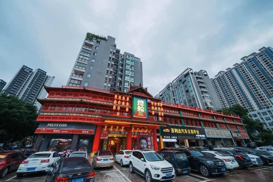 位于惠城區(qū)口岸路的“燈船”唐風(fēng)建筑風(fēng)格十分醒目。