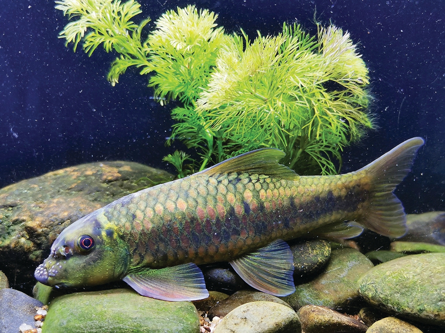 在實(shí)驗(yàn)室里,王偉勝成功將唐魚人工繁殖,為唐魚在龍門縣的種群保育、增殖奠定技術(shù)基礎(chǔ)。他還將興凱鱊種群飼養(yǎng)成功,美其名曰“鳑鲏天堂”,向?qū)W生們展示和講解。