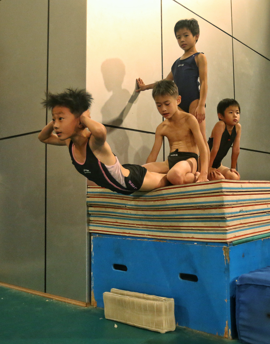 這是惠州市體育運(yùn)動(dòng)學(xué)校跳水隊(duì)訓(xùn)練房再平常不過(guò)的訓(xùn)練場(chǎng)景。