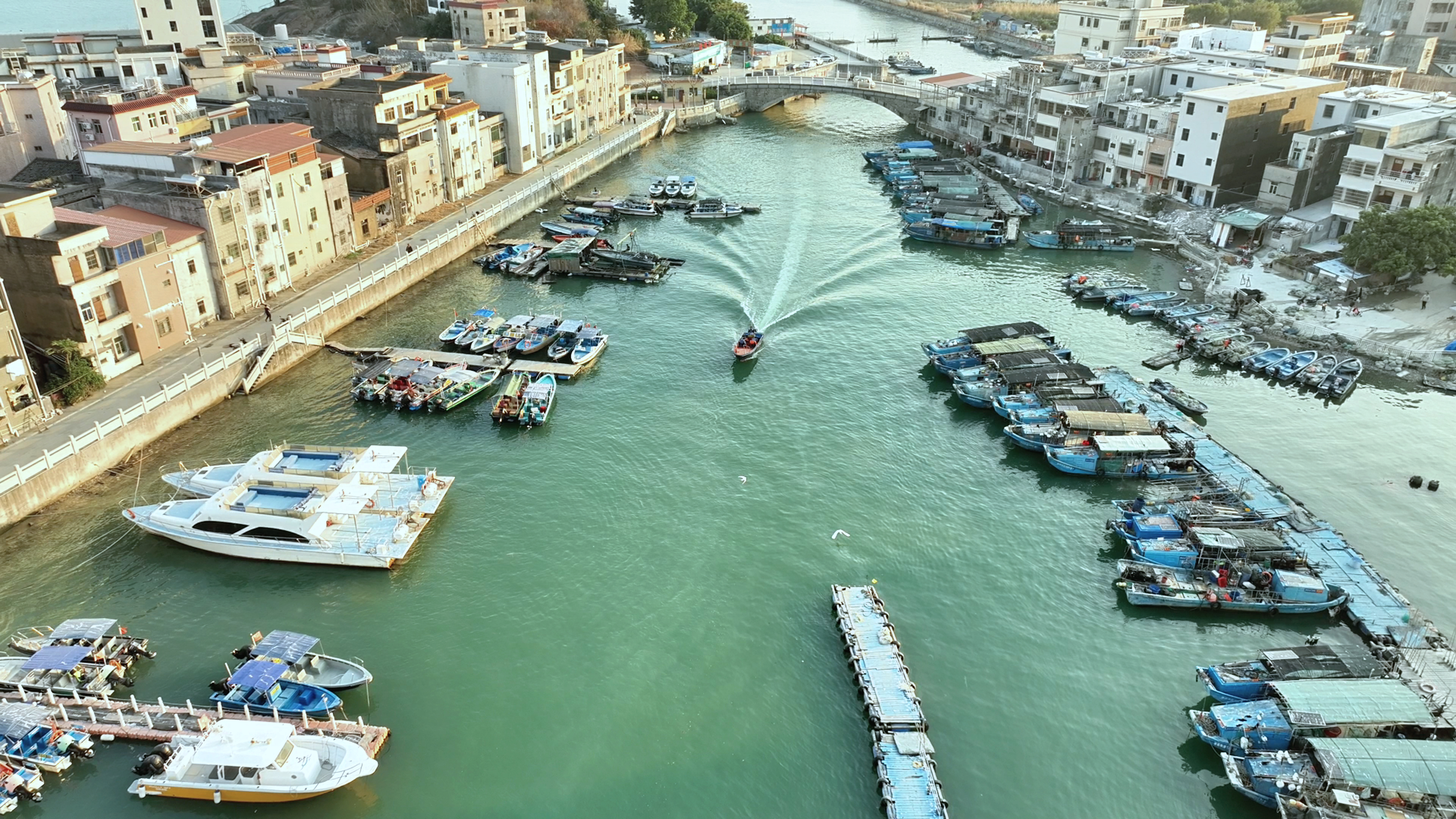 包禾塘是一個(gè)呈三角形狀的入海口區(qū)域,東側(cè)和西側(cè)是居民房,南側(cè)是連心橋。彎曲如龍的青龍河從鐵爐嶂的山澗盤旋而出,自北向南一路奔流,流經(jīng)新村村、霞新村、霞涌社區(qū)等村(居)后,經(jīng)連心橋入海。漁民們的漁船在這里停靠,也從這里出海。
