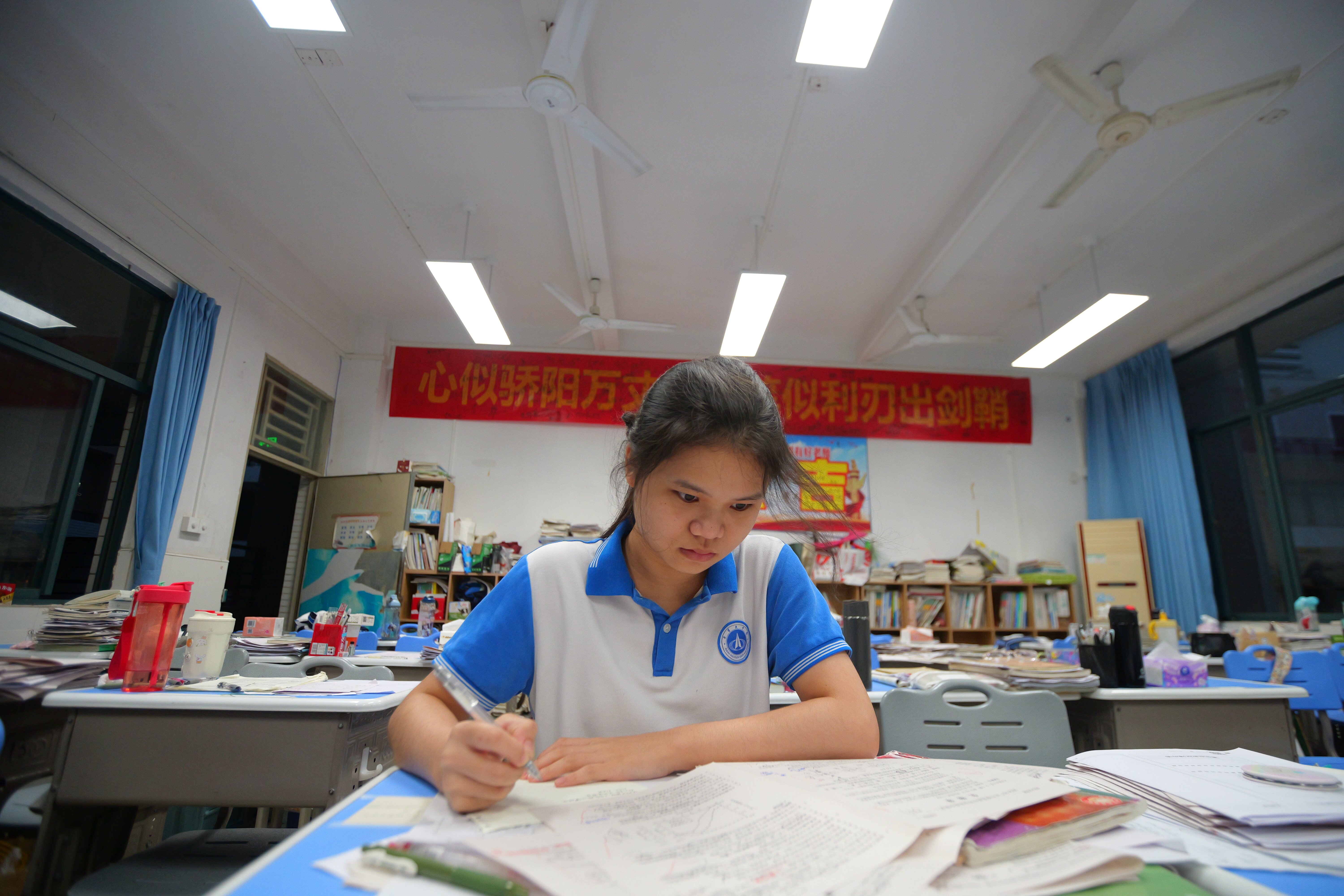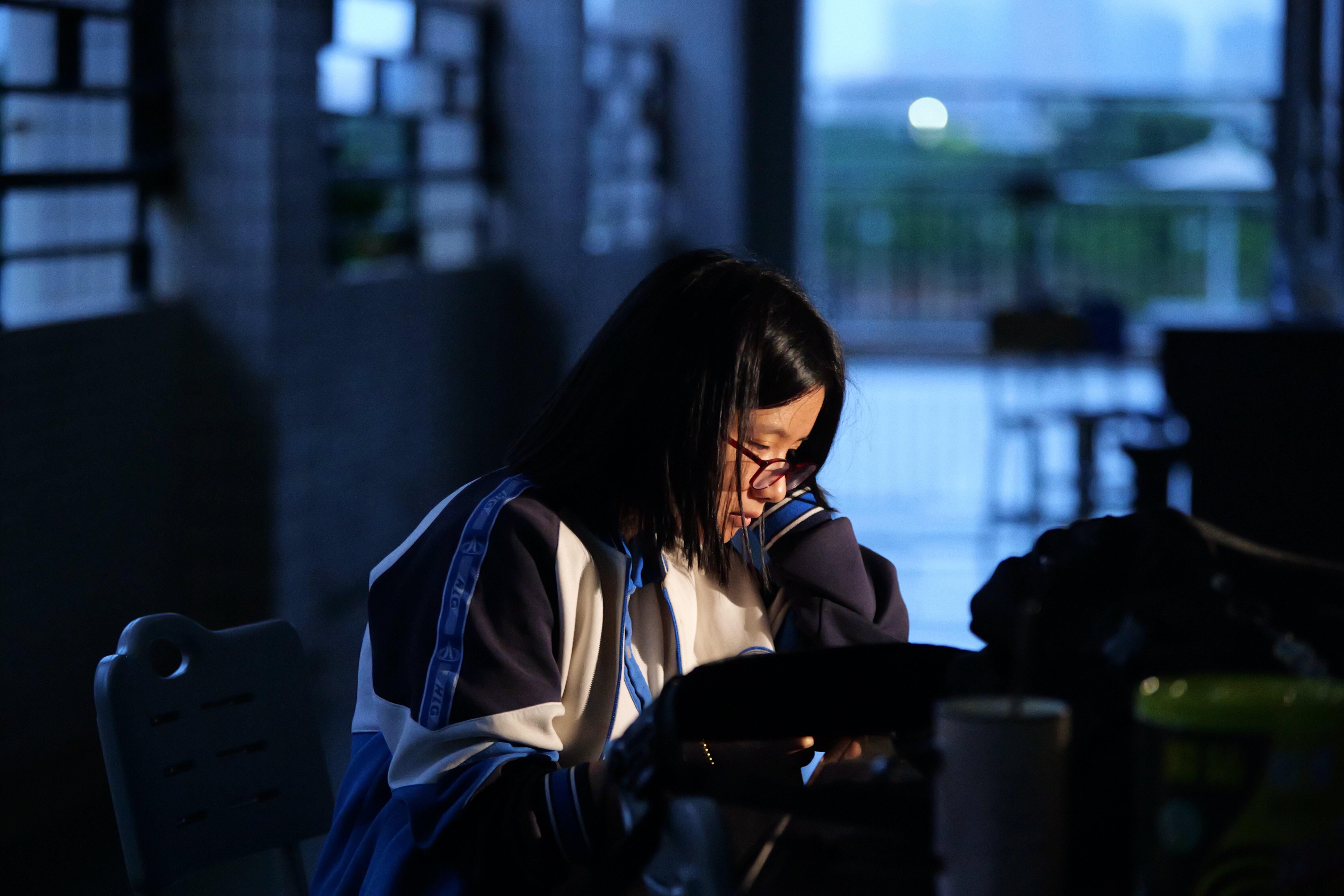 凌晨5點(diǎn)10分,天空下起了小雨,夜色尚未散去,惠州市華羅庚中學(xué)的部分高三教室已經(jīng)亮起溫暖的燈光,高三(8)班的黃珈穎在課室外的走廊上安靜地看書,她告訴記者:“我希望在剩下的十幾天里再努力一點(diǎn),希望成績(jī)還能提上去。”