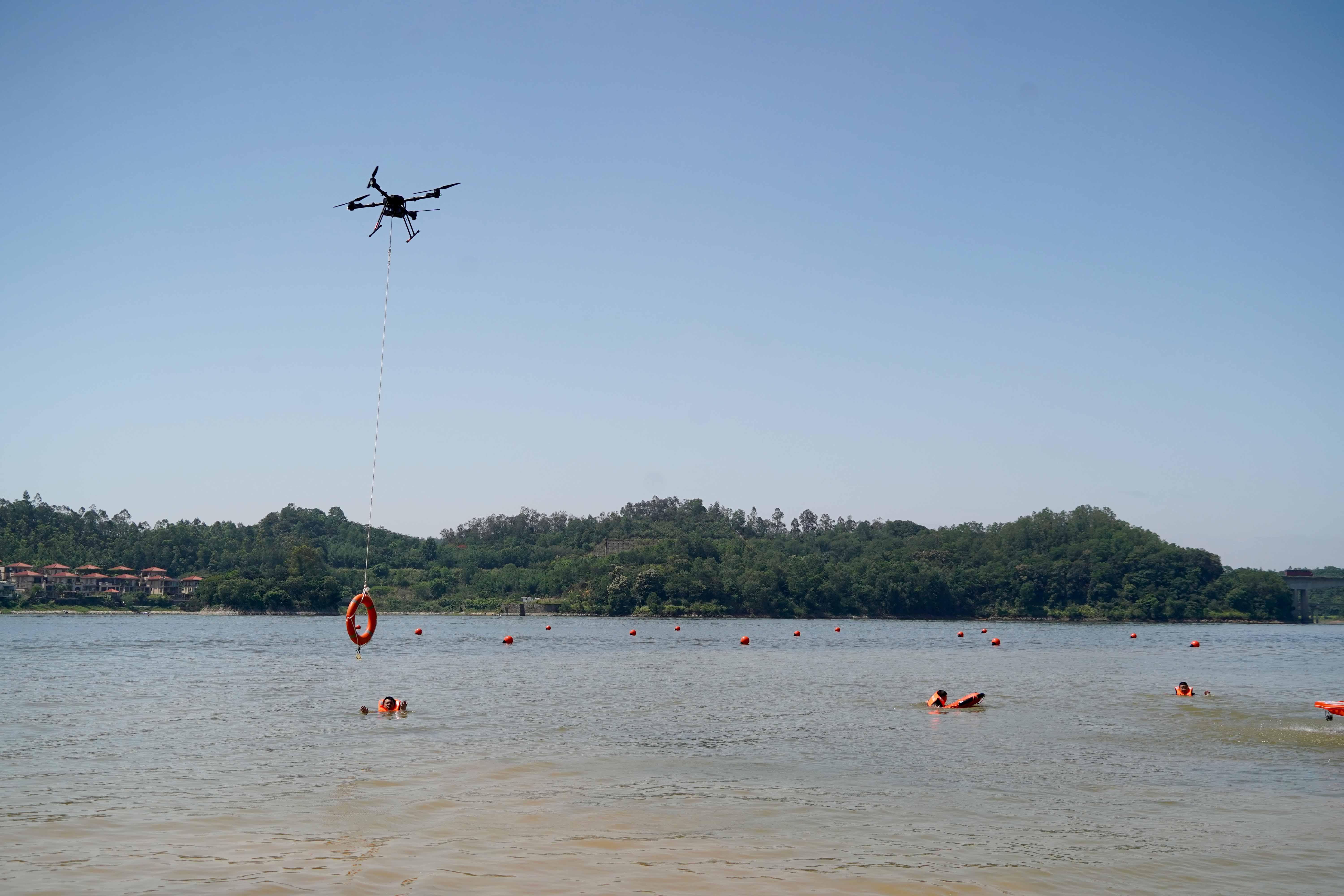 在水面過障環(huán)節(jié),操作手俯身駕駛沖鋒舟,一次又一次快速通過門字型障礙物,既使人捏了一把汗,又讓人忍不住暗自叫好;協(xié)同搜救是在無人機起飛后1分鐘,沖鋒舟即出發(fā)抵達(dá)指定救援區(qū)域,然后再由無人機搜索目標(biāo),并引導(dǎo)沖鋒舟隊員上岸轉(zhuǎn)移目標(biāo)。