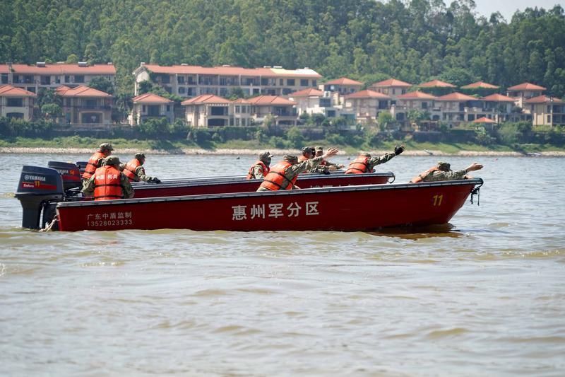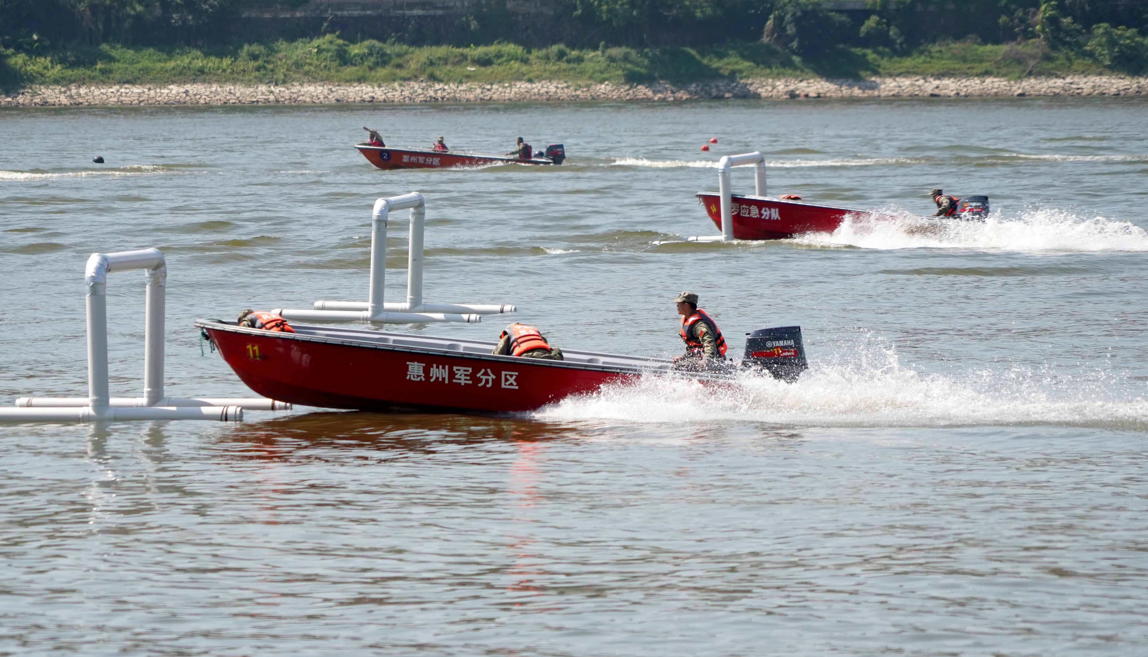 當(dāng)天上午,在惠城區(qū)角洞水庫寬闊的水面上,只見參加演練的民兵骨干軍容嚴(yán)整、士氣高昂,大家操作班組沖鋒舟先后進(jìn)行了S形過障、倒舟行駛、通過障礙和協(xié)同搜救課目連貫考核。