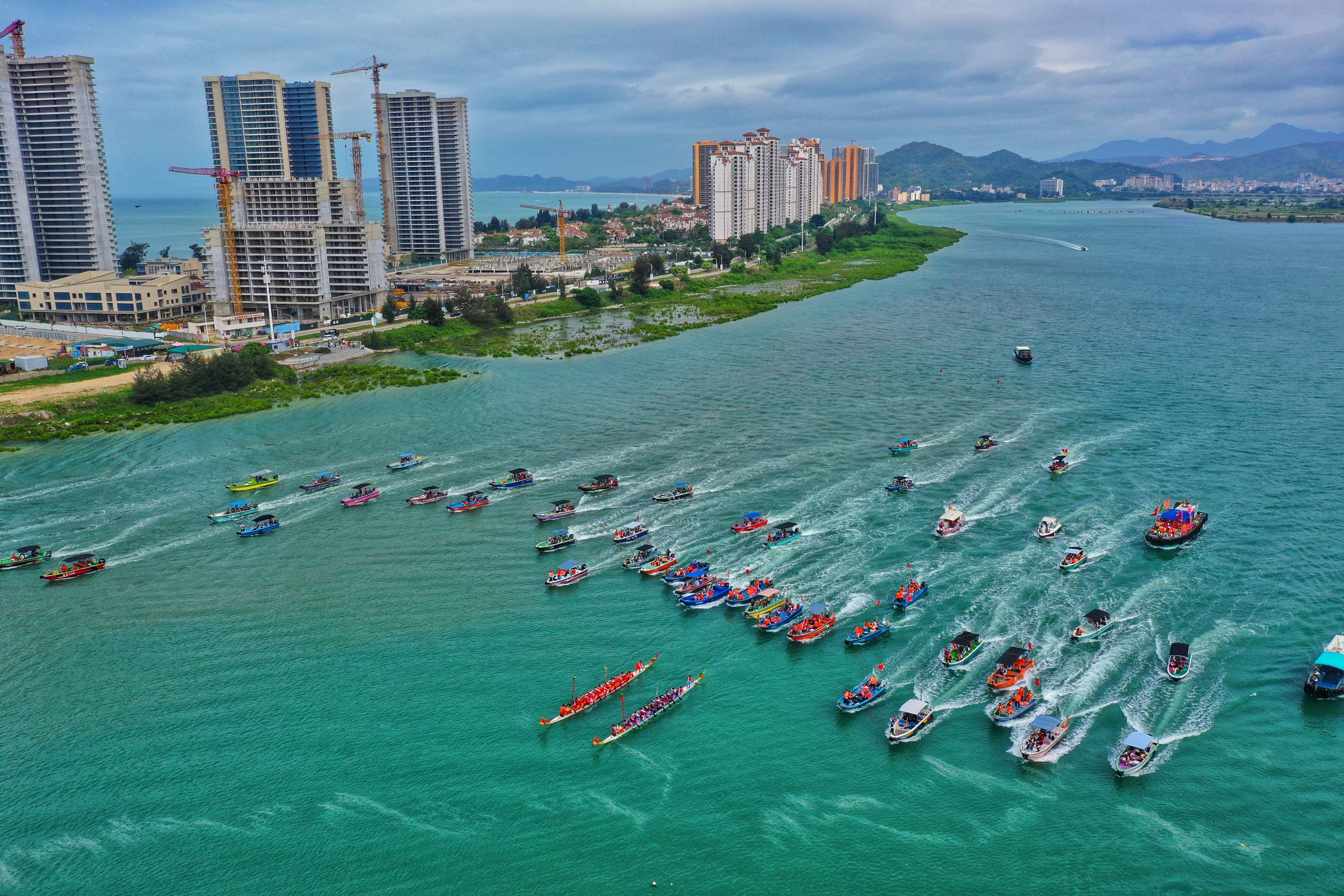 惠東縣港口濱海旅游度假區(qū)內(nèi)灣的新村村傳統(tǒng)龍舟賽現(xiàn)場。