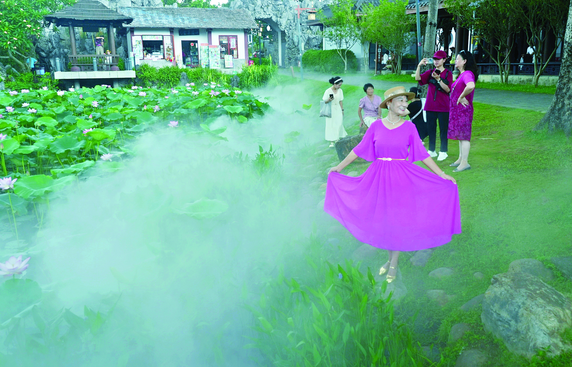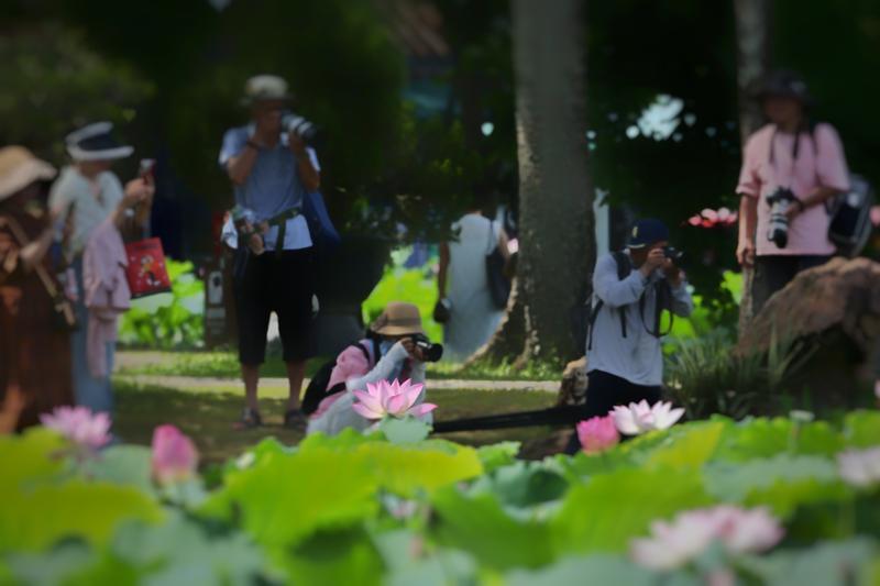 豐渚園荷花競相綻放,眾多攝影愛好者前往賞荷采風(fēng)。