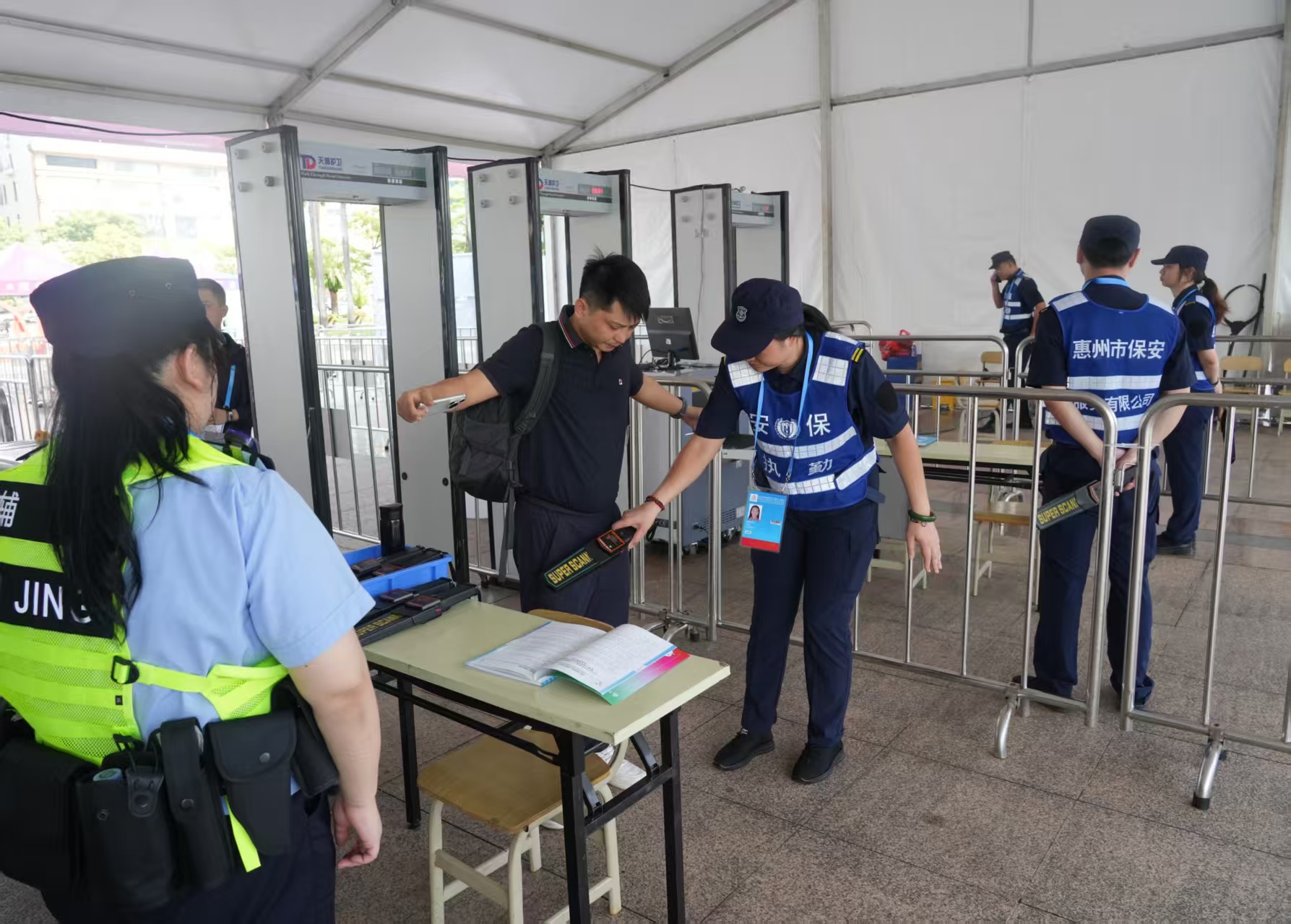 安保人員仔細對入場人員進行檢查。