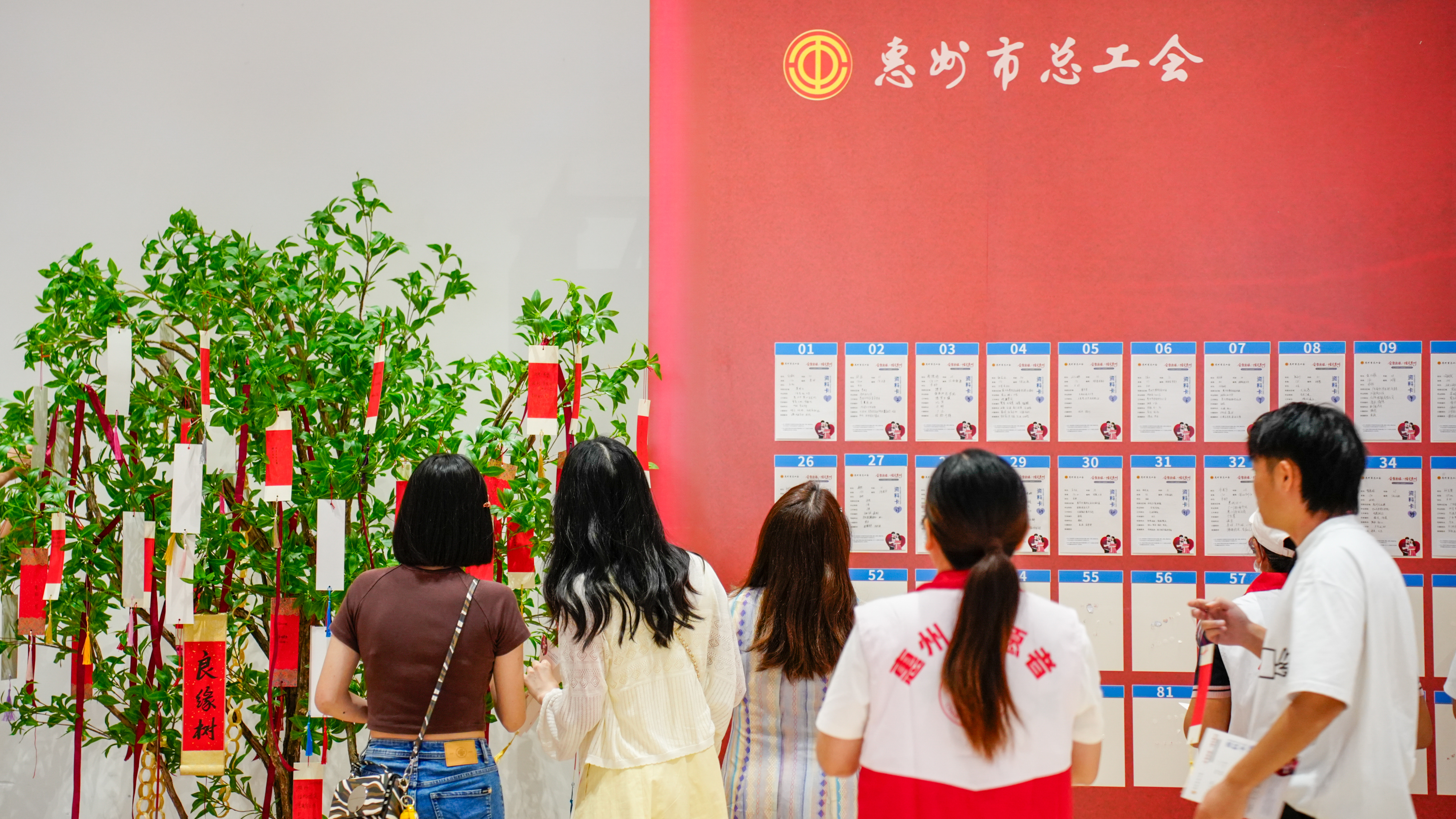 活動(dòng)現(xiàn)場(chǎng)隨處可見的“紅馬甲”志愿者也成為一道亮麗的風(fēng)景線。正如惠州市總工會(huì)相關(guān)負(fù)責(zé)人所言:“為了確;顒(dòng)順利開展、給大家提供周全服務(wù),現(xiàn)場(chǎng)的志愿者主動(dòng)放棄周末休息時(shí)間,全程投入活動(dòng)保障工作。正是他們的貼心付出,讓這場(chǎng)緣分之旅更顯溫暖!边B續(xù)2天的活動(dòng),現(xiàn)場(chǎng)共有近50名志愿者提供服務(wù)。