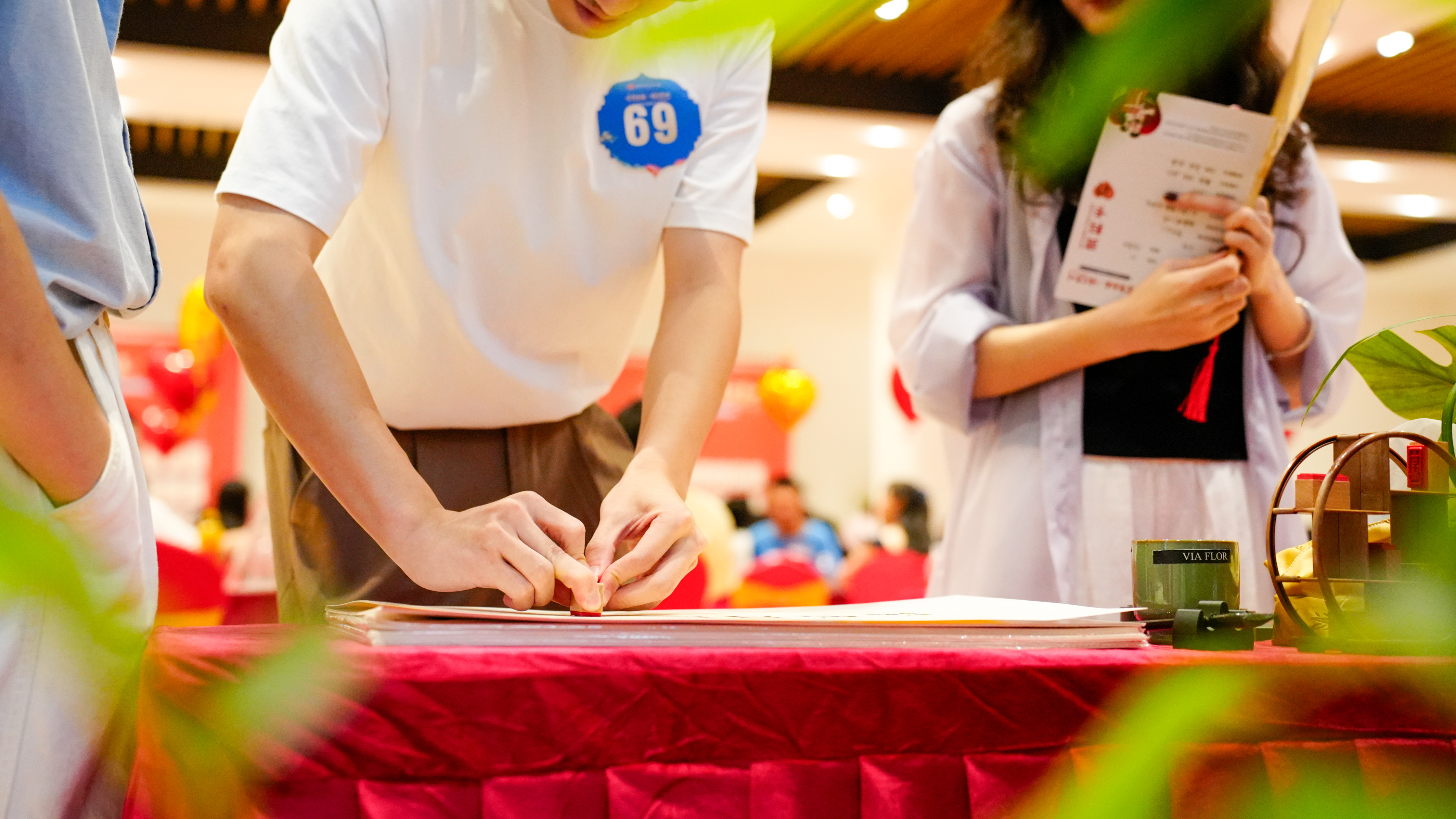現(xiàn)場(chǎng)精心布置了書法案臺(tái)與點(diǎn)茶區(qū),男女嘉賓可自取宣紙、毛筆,書寫中秋詩(shī)句、生活寄語(yǔ),讓墨香承載心意;也可在茶席旁學(xué)習(xí)碾茶、注湯、擊拂的技法,體驗(yàn)宋式點(diǎn)茶,既弘揚(yáng)了中華優(yōu)秀傳統(tǒng)文化,又營(yíng)造了傳統(tǒng)節(jié)日氛圍。