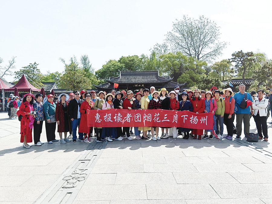 4月12日,東籬俱樂(lè)部會(huì)員一行38人參加了惠報(bào)國(guó)旅組織的“惠報(bào)讀者團(tuán)煙花三月下?lián)P州”活動(dòng),團(tuán)友們從惠州北站坐高鐵出發(fā),直達(dá)揚(yáng)州站,體驗(yàn)家門口坐高鐵出游的便利。