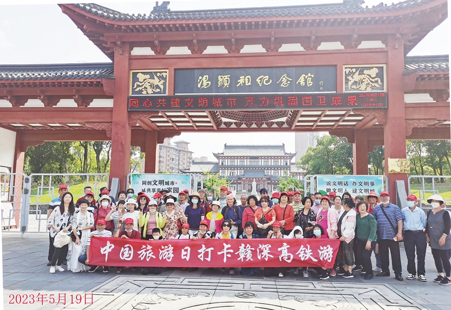 5·19中國(guó)旅游日,惠報(bào)國(guó)旅組織打卡贛深高鐵游。
