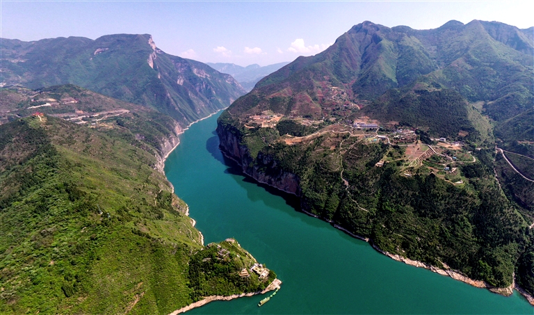長(zhǎng)約8公里的瞿塘峽兩岸如削,巖壁高聳。