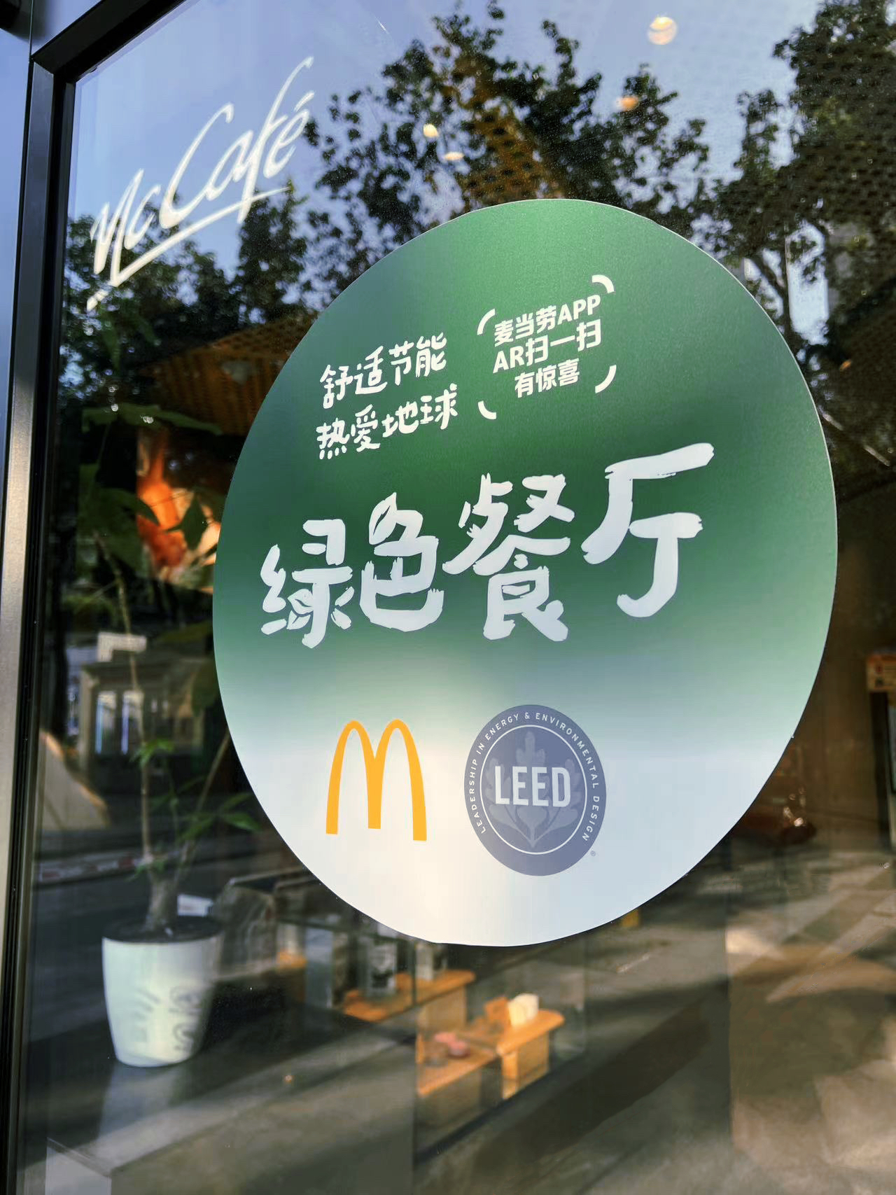 麥當(dāng)勞中國(guó)宣布綠色餐廳突破2500家,并在餐廳主入口貼上了嶄新的“綠色餐廳”標(biāo)識(shí)