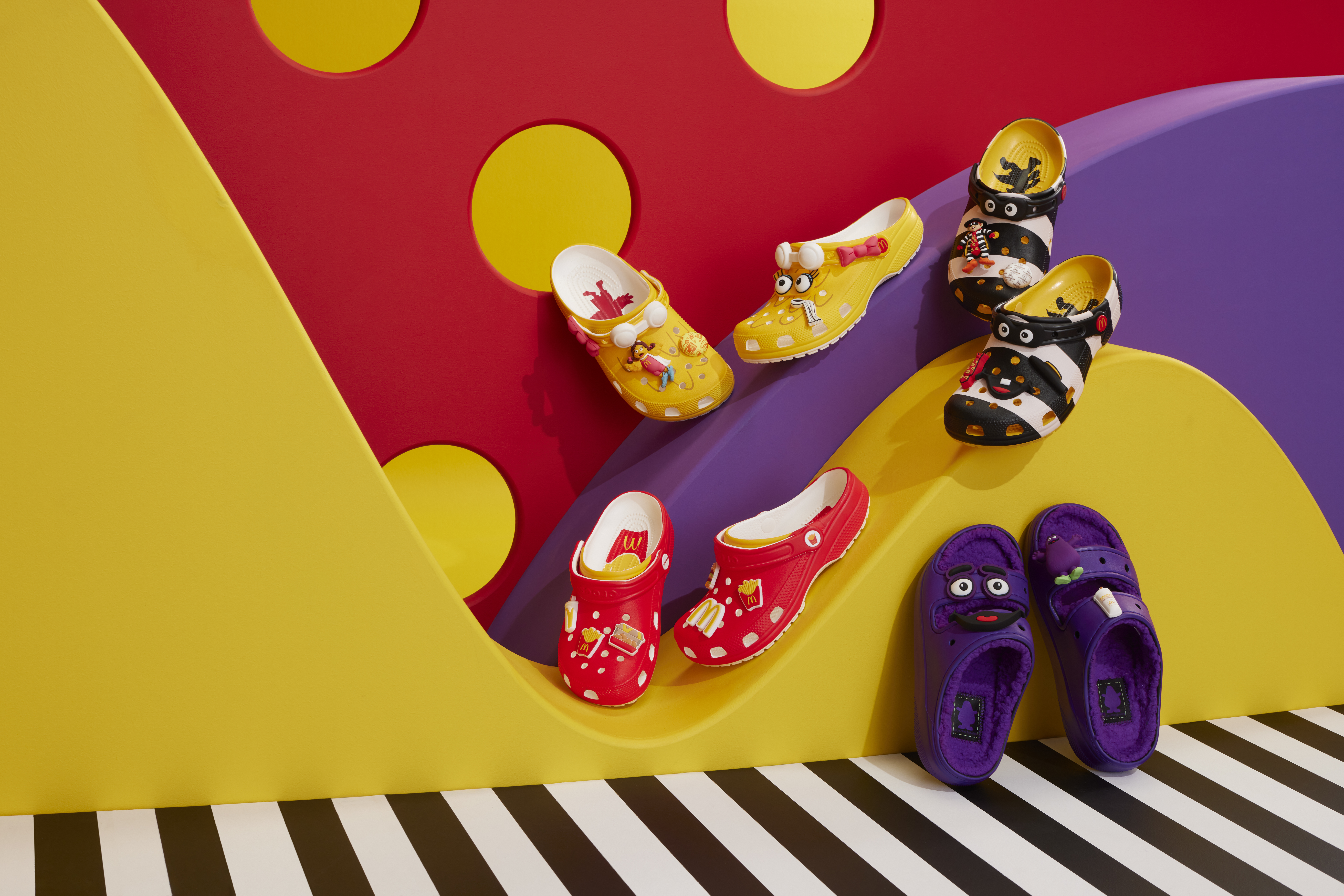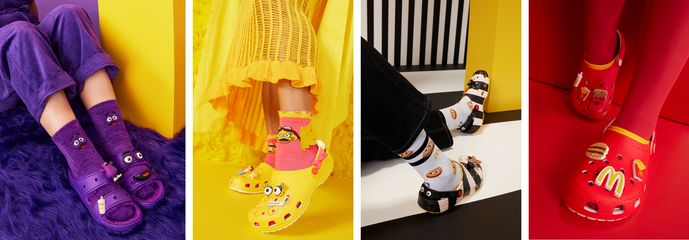 麥當(dāng)勞x Crocs 聯(lián)名系列共推出四雙附有智必星的鞋款與三款長襪: