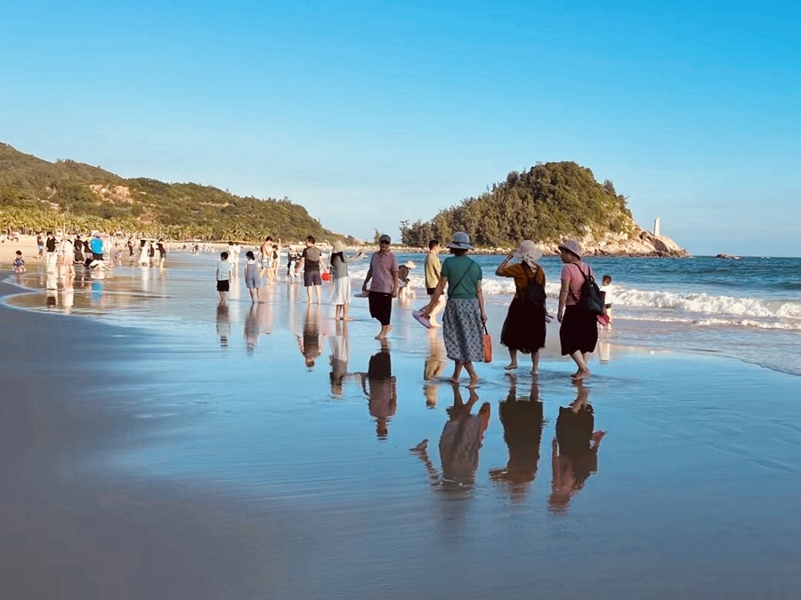 當(dāng)然,到海陵島一定要享受的,還是海邊時(shí)光。這里擁有風(fēng)光旖旎的海濱旅游資源,海水清澈,沙灘白潔細(xì)膩,十里銀灘、北洛灣都是漫步海灘、踏海逐浪的好地方。我們所住的酒店便在北洛灣,拉開(kāi)窗簾觸目所及是寬闊的海景,下樓就是海灘。晨起,漫步在細(xì)軟的沙灘上等待日出,看金色光芒慢慢灑遍海面;午睡后,帶著孩子追逐海浪,清脆的笑聲隨著海風(fēng)飄揚(yáng)在沙灘上,遠(yuǎn)遠(yuǎn)看見(jiàn)兩位保潔拉著籮筐在沙灘上將游客遺落的少量垃圾拾起,孩子放下手中的沙鏟跑去幫忙,潔白的沙灘上很快恢復(fù)了干凈;晚歸,海灘上的燈光已經(jīng)亮起,人們或閑坐岸邊,點(diǎn)幾串燒烤,喝一點(diǎn)小酒,聽(tīng)海潮聲聲;或攜手沿著海岸慢慢前行,心緒在潮聲中逐漸寧?kù)o。行程的第二天,我們還去到了十里銀灘參加篝火晚會(huì),大家圍成一圈,圍著篝火,隨著節(jié)奏感極強(qiáng)的音樂(lè)跳舞,是久違的酣暢淋漓。