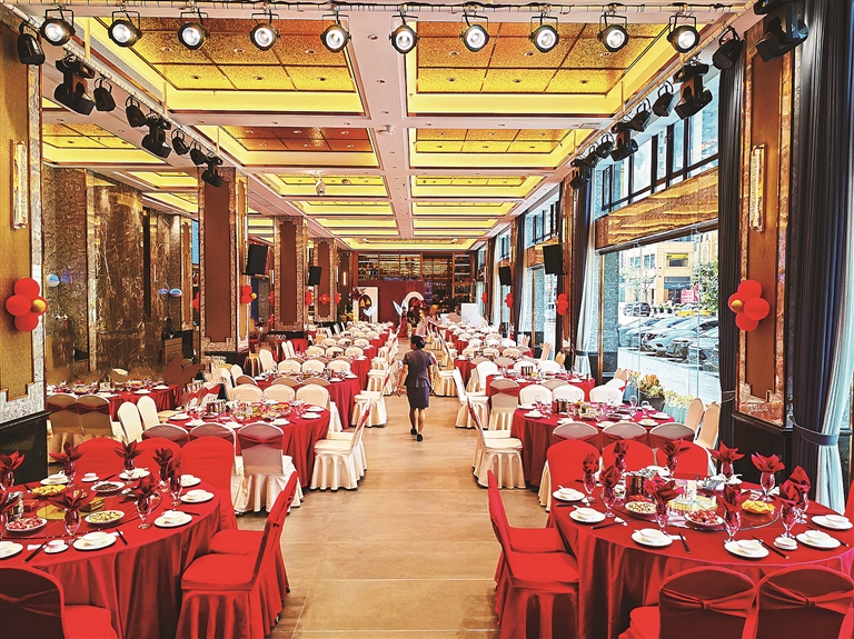 “這些宴會廳經(jīng)過精心打造,整體環(huán)境舒適、優(yōu)雅,而且配備了專業(yè)的設(shè)備設(shè)施,比如配有LED屏、可供演出的舞臺等,可以為婚慶宴席、公司聚餐、大型集會、中小型文藝演出、舞會等活動提供場所。”呂俐樺笑言,6個規(guī)格不一的宴會廳,可滿足各種大、小宴席需求。