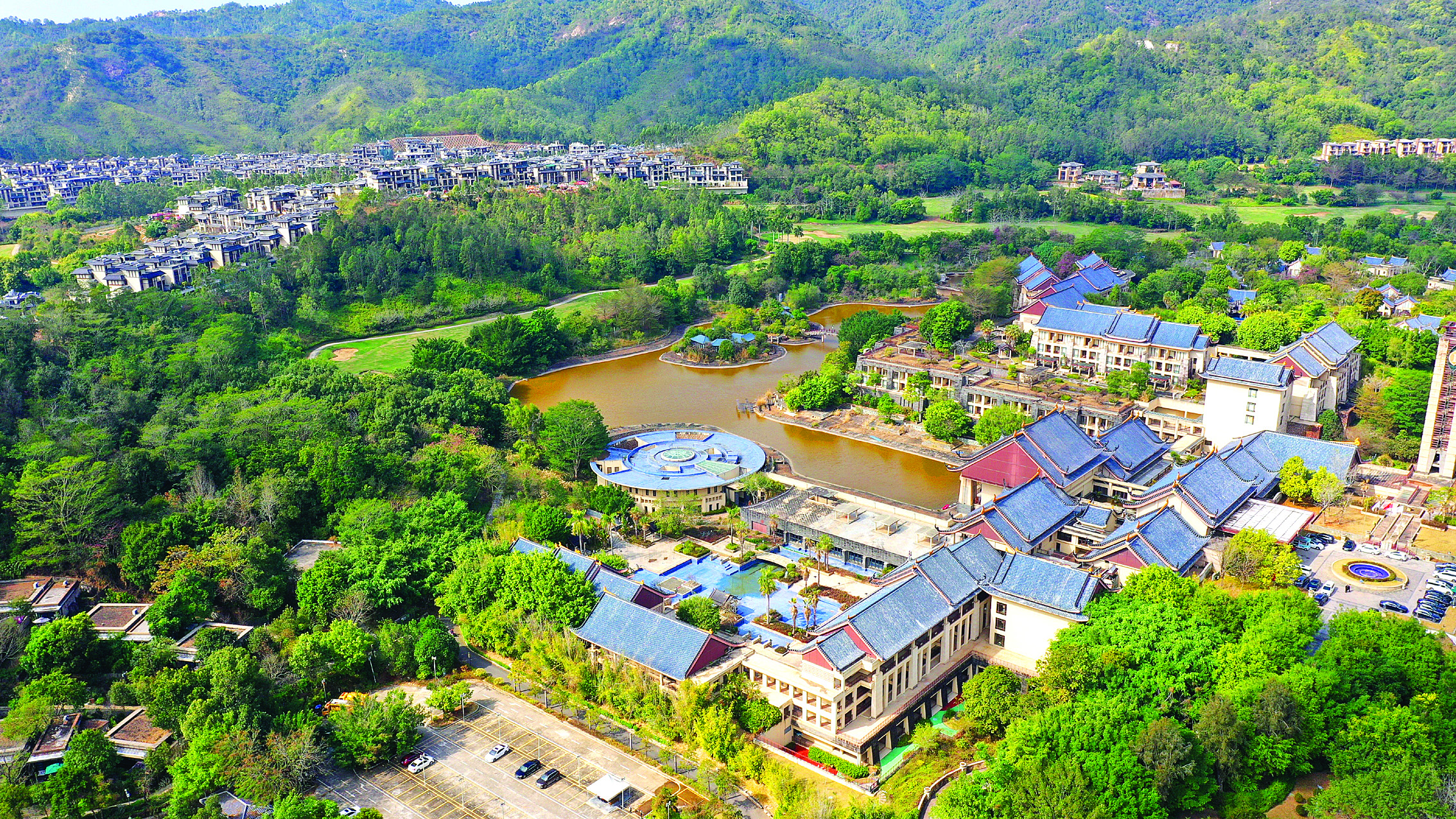 富力惠林溫泉所在的黃沙洞村,四面環(huán)山,綠道蜿蜒,植被茂盛,不僅自然風(fēng)光優(yōu)美,還是惠城區(qū)有名的“溫泉村”。這里地?zé)豳Y源豐富,溫泉分布面積約500畝。正是看中這里的特色資源,富力集團(tuán)在此投資打造了惠林溫泉度假區(qū)。度假區(qū)配套惠州洲際度假酒店、富力惠林莊園、山地運動公園、兒童主題公園、櫻花谷等,集山林、溪谷、溫泉于一體,游客來到這里不僅可以泡溫泉緩解疲憊,還可以欣賞滿山層林的大自然風(fēng)光。