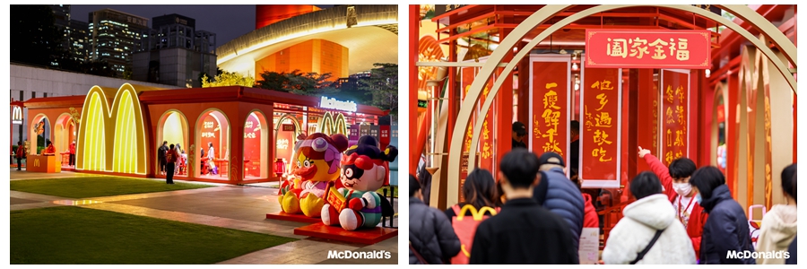 即日起,“祝你今年金拱門”新春快閃活動(dòng)陸續(xù)登陸深圳、上海、北京、廣州,為消費(fèi)者送上來自金拱門的好意頭;顒(dòng)以傳統(tǒng)中式風(fēng)格打造,集美食賞味、民俗文化和創(chuàng)新互動(dòng)于一體。麥當(dāng)勞品牌經(jīng)典的紅、黃色在新春主題的襯托下格外顯眼,場(chǎng)地中標(biāo)志性的金色拱門也成為了眾多粉絲爭(zhēng)相合影的打卡點(diǎn)。新春快閃活動(dòng)現(xiàn)場(chǎng)共設(shè)有“金榜題名”、“金玉良緣”、“闔家金!、“日進(jìn)斗金”四個(gè)互動(dòng)區(qū)域,為消費(fèi)者分別送上關(guān)于學(xué)業(yè)、愛情、家庭和財(cái)富上的新年祝福,消費(fèi)者在這些區(qū)域完成打卡任務(wù)后,還有機(jī)會(huì)贏取特別贈(zèng)禮。此外,現(xiàn)場(chǎng)還設(shè)置了吹糖人、剪紙、投壺等傳統(tǒng)年俗活動(dòng),年味滿滿。