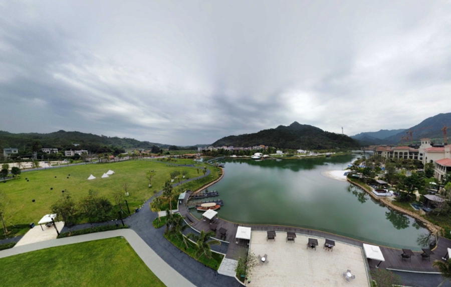 位于河源,坐擁3800畝千溪幽谷,建筑面積約200萬㎡。這里有群山、樹林、草甸、溫泉、樂園,鬧中取靜、遠離喧囂。這里還有巨大的龍骨樂園,非常適合遛娃!