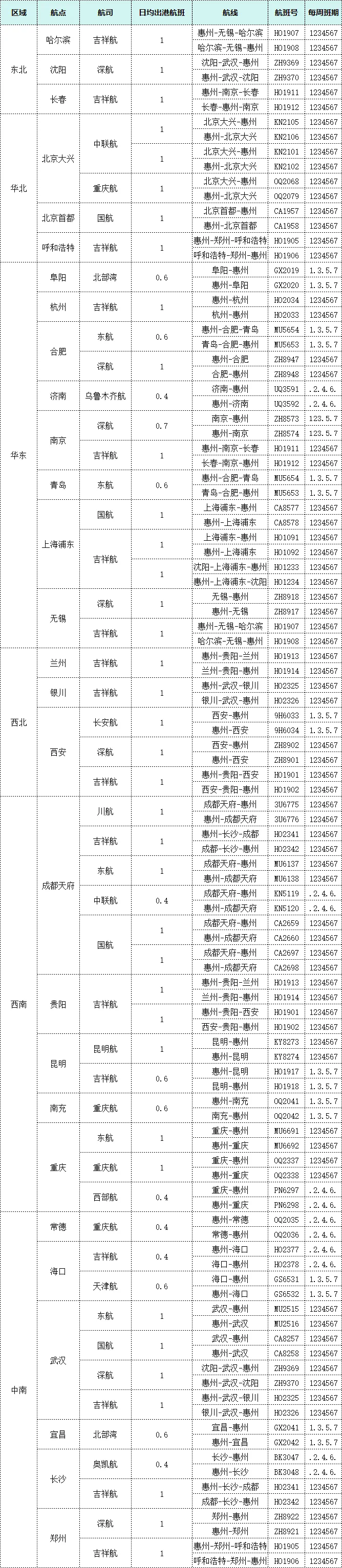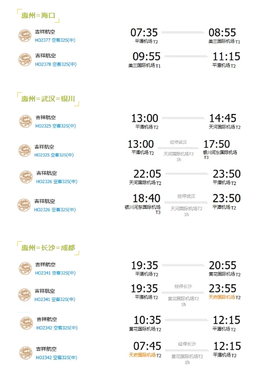 惠州機(jī)場(chǎng)航班時(shí)刻表