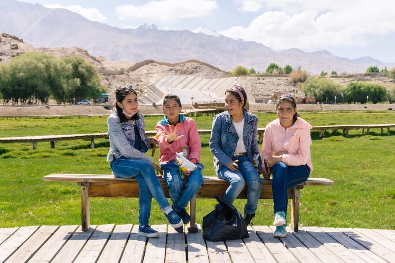 在草原上休憩的塔吉克族少女。