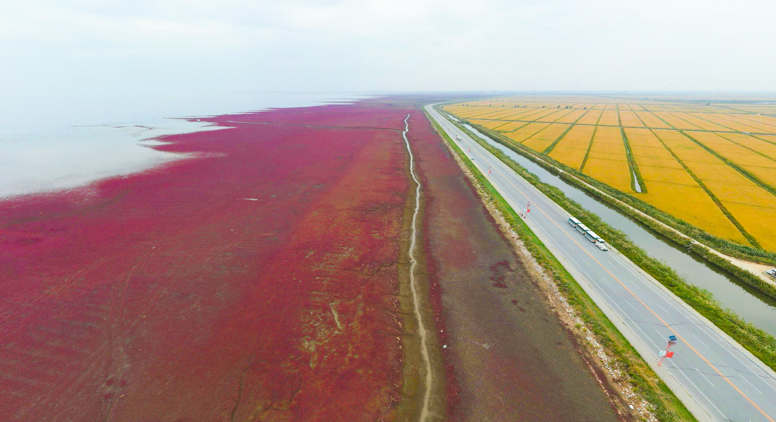 這里的紅色海岸線,也被評為“中國最精彩的休閑廊道”“中國最浪漫的戶外游憩海岸線”。每年四月,紅海灘初為嫩紅色,隨后漸次轉(zhuǎn)深。到十月,海灘又由紅變紫。最佳觀賞時(shí)間為每年五月至十月。這里稻米飄香,海鷗、丹頂鶴飛翔。
