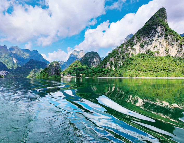浩坤湖在最后一天濃妝艷抹出場(chǎng)了,像顆遺落人間的明珠,在全車(chē)人尖叫聲中閃爍著耀眼光芒。翡翠與綠寶石交織的色調(diào)勾勒出絕世美顏,讓人第一眼目睹時(shí)永生難忘。而她:恬靜優(yōu)雅脈脈含羞。好想乘一葉輕舟,雙槳驚飛鴻雁,抑或穿行小橋仙居拜訪人家。集體坐船繞湖一周,致敬青山如畫(huà),碧水如屏。愿祖國(guó)青山綠水長(zhǎng)駐人間。