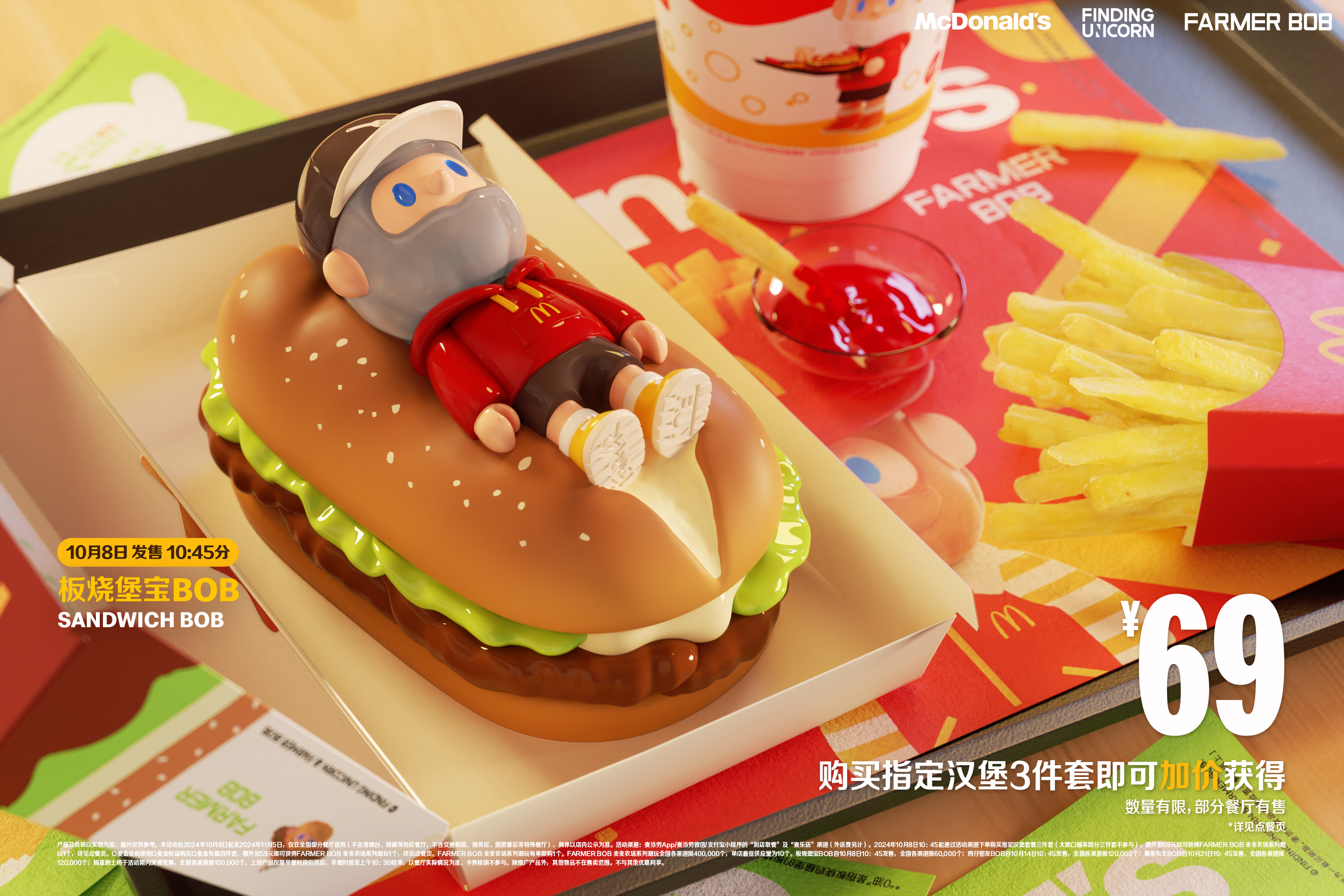 “FARMER BOB麥麥農(nóng)場系列潮玩”包括四款:以飽滿多汁的新升級板燒雞腿堡為核心設(shè)計的——“板燒堡寶”;以“無籠好雞”為靈感創(chuàng)造的熱愛自然的小雞飼養(yǎng)員——“雞仔密友”;以殷勤款待的麥當(dāng)勞員工為設(shè)計靈感的——“薯條先生”;以及最后發(fā)布的神秘款式,將擇期驚喜上線。四款潮玩將于即日起至11月5日陸續(xù)推出,每周上線一款,消費(fèi)者購買指定麥當(dāng)勞漢堡三件套超值套餐即可獲得購買機(jī)會。