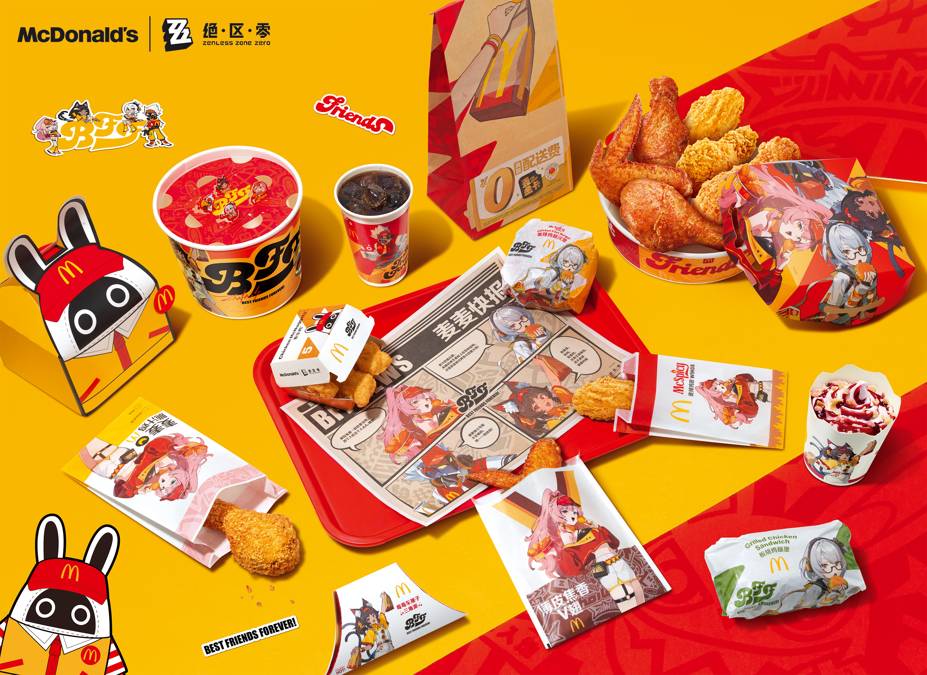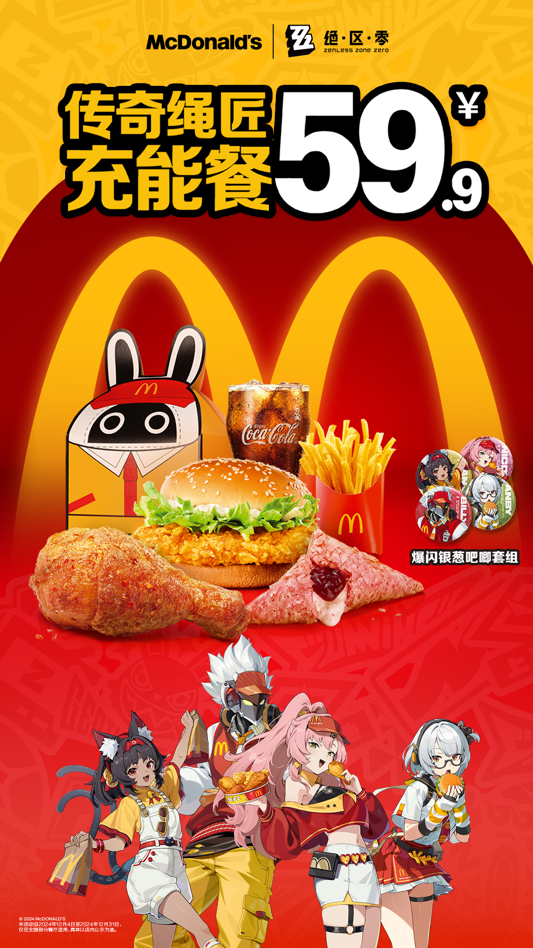 2024年12月4日,麥當(dāng)勞中國(guó)與米哈游旗下游戲《絕區(qū)零》,正式開(kāi)啟聯(lián)動(dòng)活動(dòng),推出主題套餐和線上線下系列互動(dòng),圍繞“永遠(yuǎn)的好朋友BFF”(Best Friends Forever)主題開(kāi)展合作。與此同時(shí),麥當(dāng)勞推出全新街頭辣鹵風(fēng)味薄皮脆汁雞,超值雞肉小食拼盤(pán)及多人套餐,讓“無(wú)籠好雞”的雞肉美味,陪伴雙方粉絲及其好友,開(kāi)展年末歡聚的友誼跨界之旅。