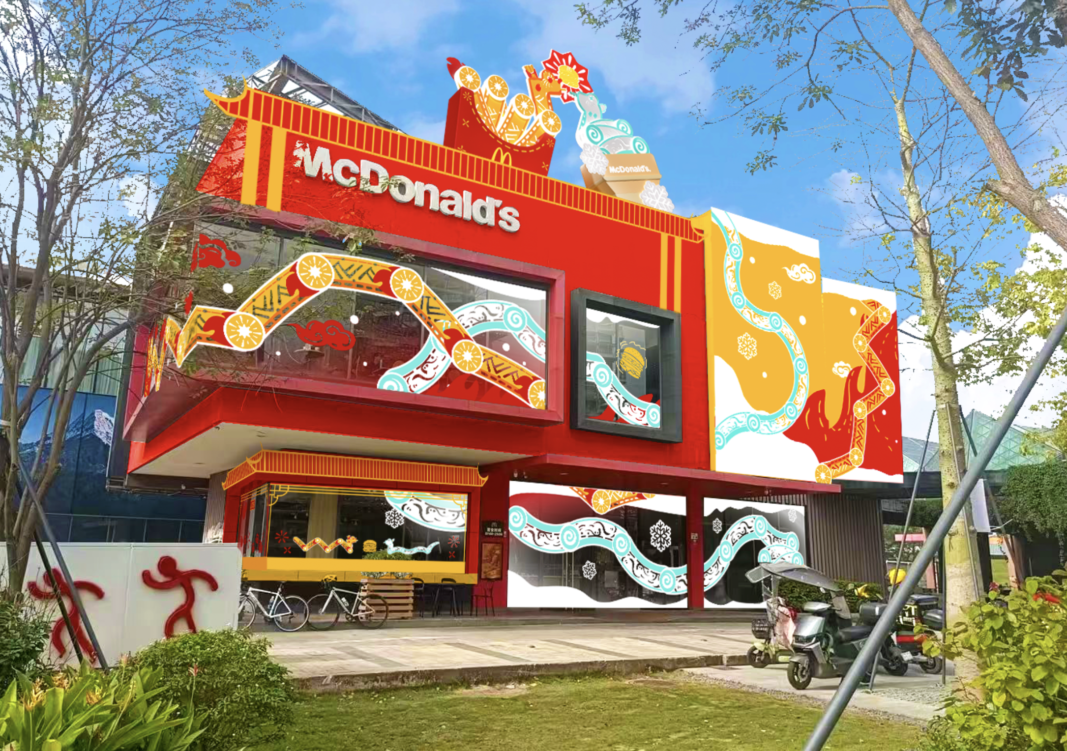 首次在深圳龍崗大運得來速餐廳登場的薯條蛇和雪糕蛇店裝,設計融合了傳統(tǒng)春節(jié)元素與現(xiàn)代潮流,營造出別具一格的喜慶氛圍