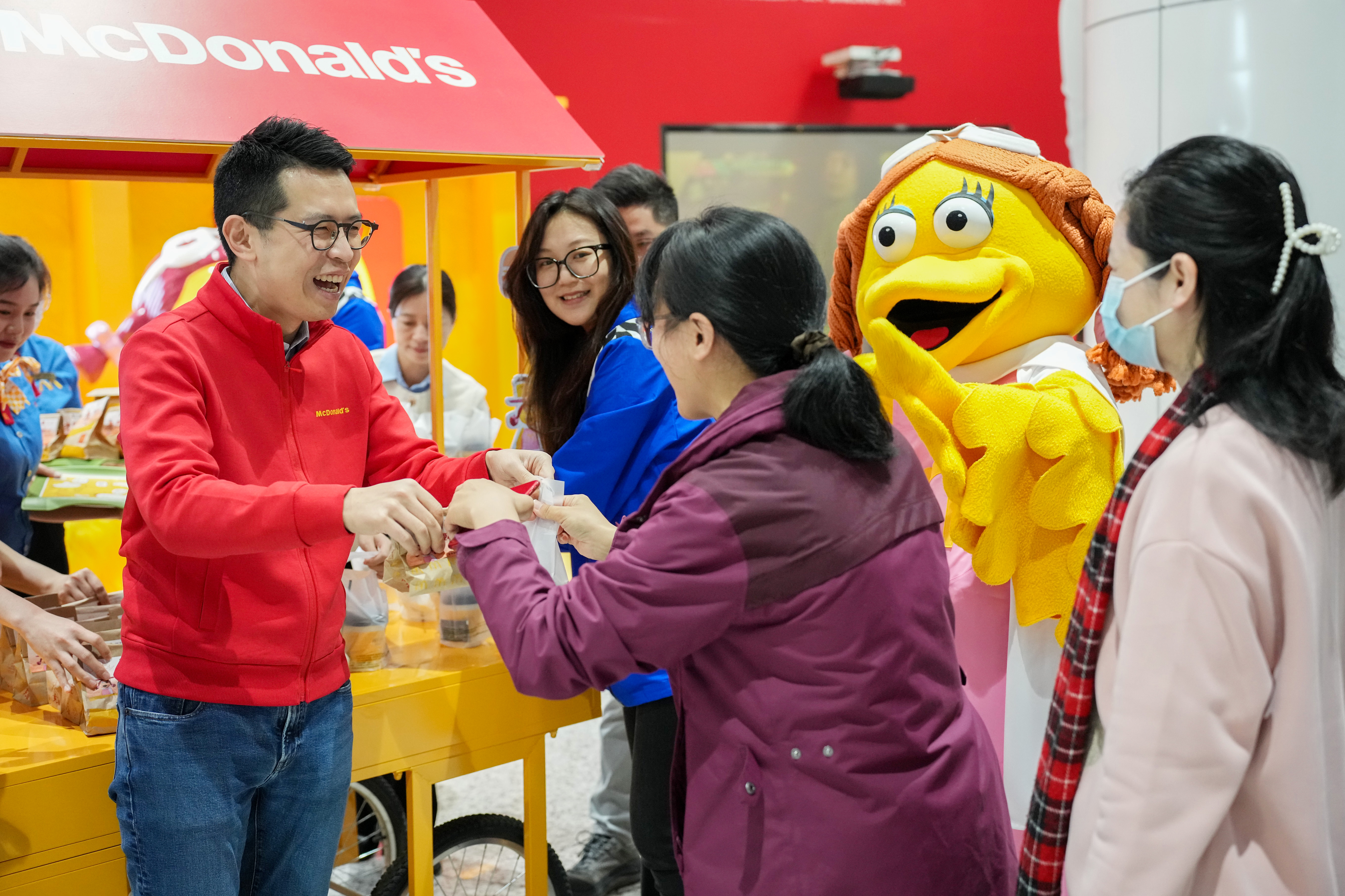 麥當(dāng)勞中國副總裁、深圳、東莞、惠州及粵西市場高級總經(jīng)理趙崇基先生為打工人派發(fā)愛心早餐
