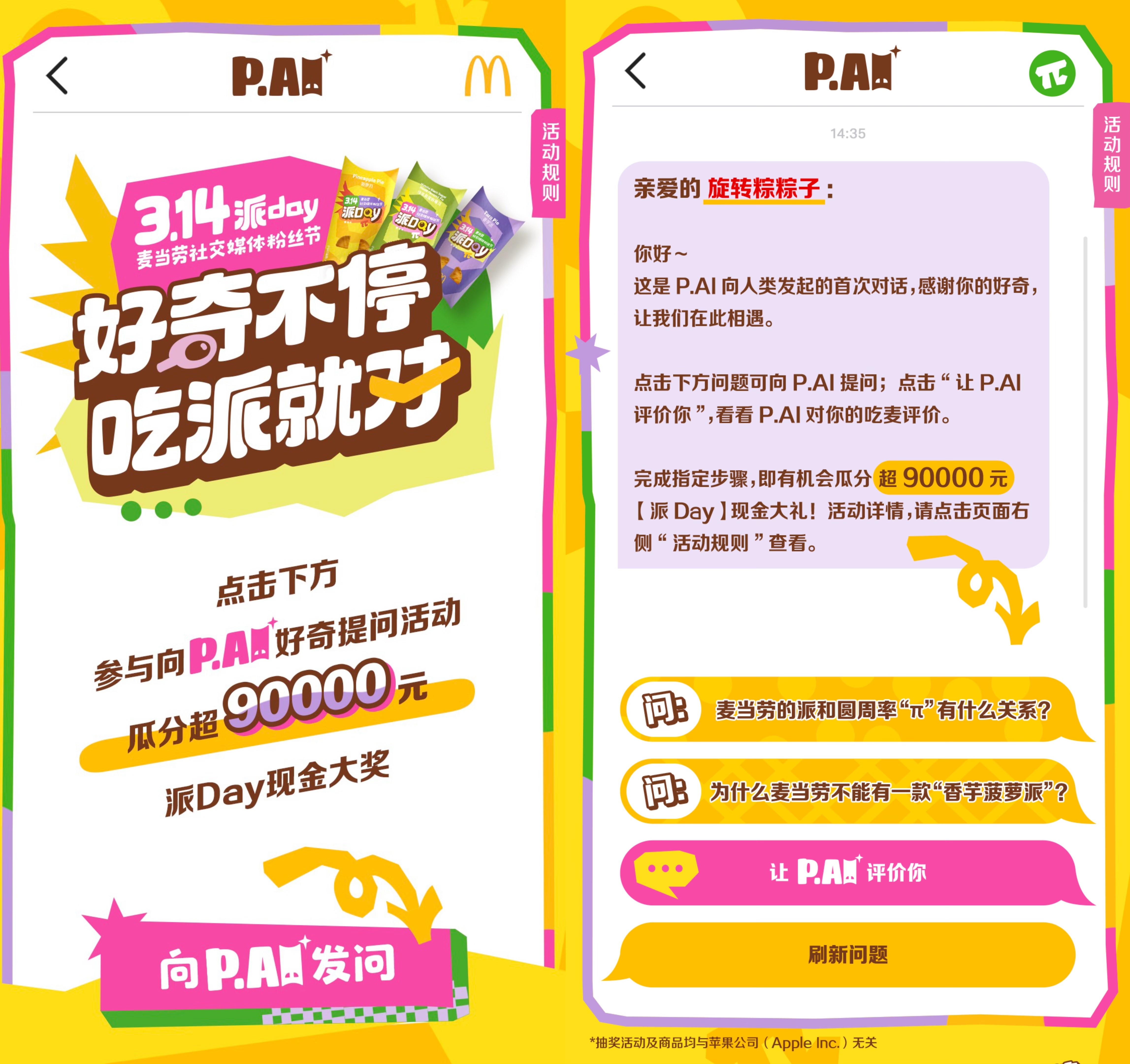 麥當(dāng)勞于派Day推出首個趣味對話式AI互動——P.AI,解鎖你的好奇心