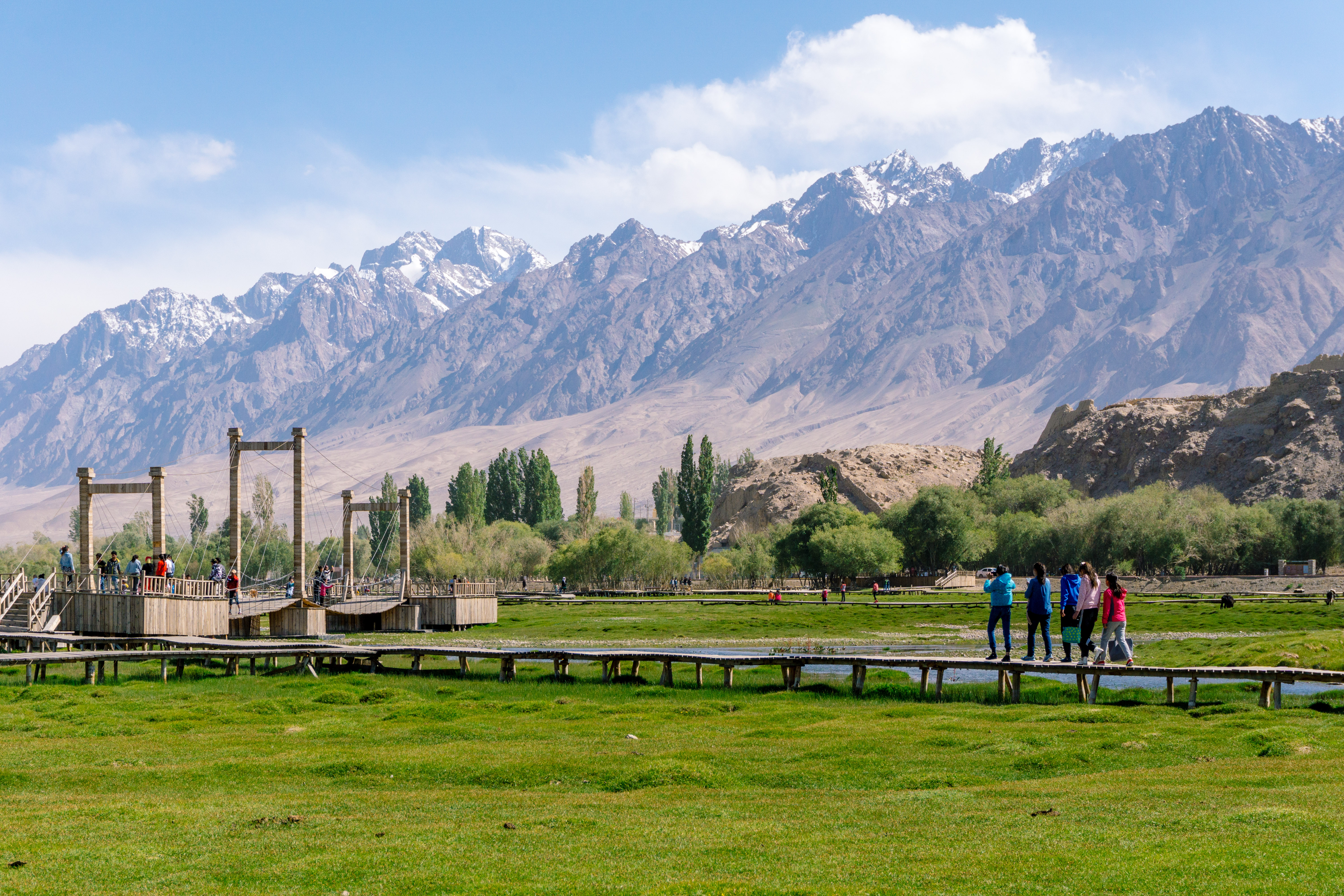 站在“世界屋脊”的蒼穹之下,慕士塔格峰的雪頂?shù)褂吃诳ɡ瓗炖锖溺R面中。這條古稱“蔥嶺”的秘境走廊,是玄奘西行取經(jīng)的必經(jīng)之路。如今沿著中巴友誼公路前行,仍能遇見頭戴繡花帽的塔吉克族人,在海拔4000米的牧場延續(xù)著鷹笛傳唱的古老傳統(tǒng)。