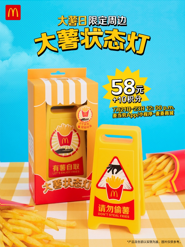 麥當勞中國以粉絲共鳴為靈感,打造提升吃薯條儀式感周邊“大薯狀態(tài)燈”