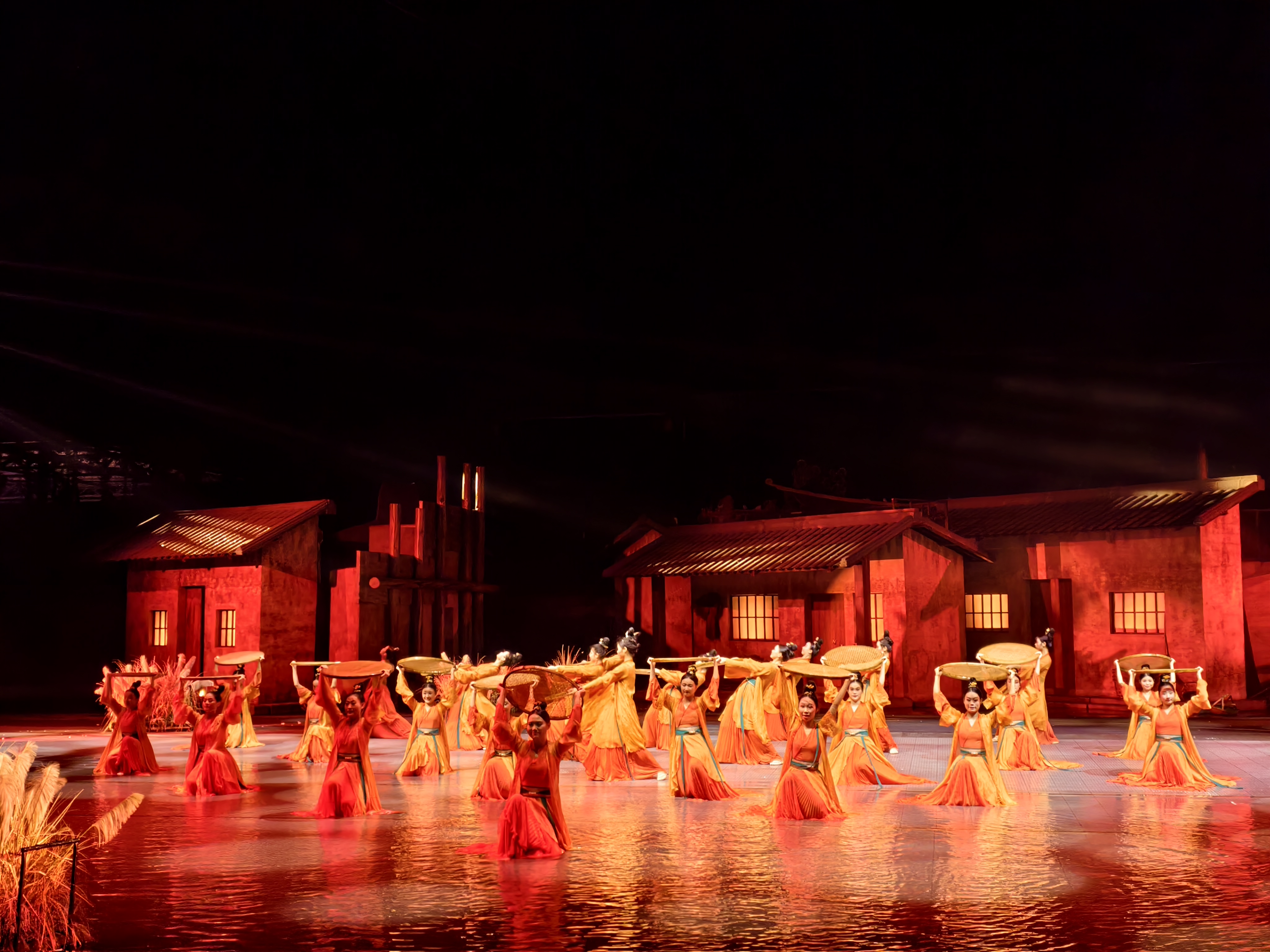 作為潮汕文旅新名片,《英歌情》以巨資打造,歷時(shí)三年精心打磨。演出以國家級(jí)非遺“英歌舞”為靈魂,通過《古潮之火》《守護(hù)家園》《安居樂業(yè)》《普天同慶》《英歌有情》等五個(gè)篇章,將4000年潮汕文明濃縮成60分鐘的視覺史詩。從虎頭埔文化起源到明代抗倭傳奇,從民俗生活到精神傳承,每一幀畫面都是對潮汕基因的深度解碼。