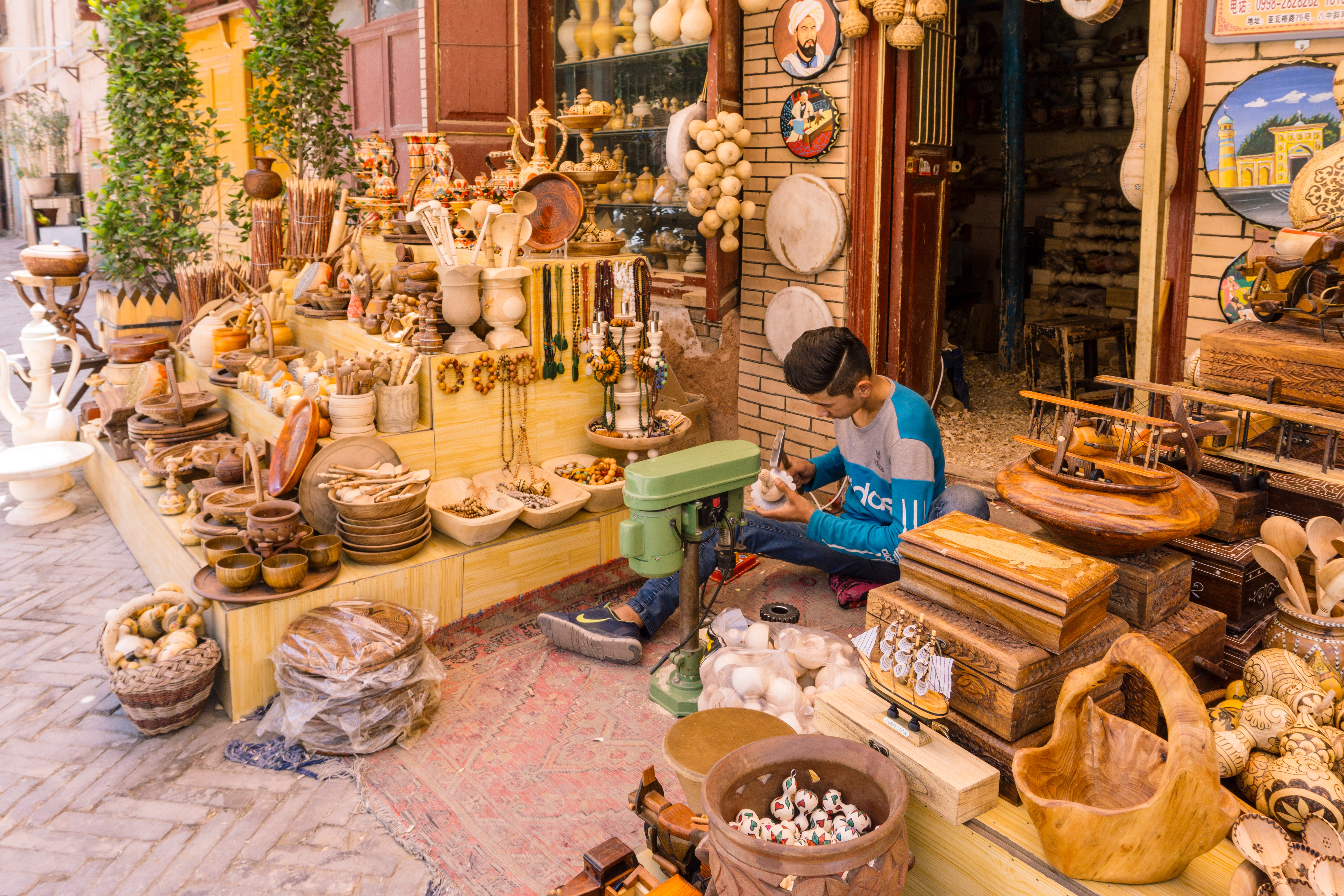 走進(jìn)迷宮般的高臺(tái)民居小巷,土黃色的建筑在陽光下泛著溫暖的光澤,精美的木雕花窗訴說著古老工藝,身著艾德萊斯綢的維吾爾族女士擦肩而過,嬉戲的孩童笑聲回蕩。轉(zhuǎn)角的手工作坊里,銅器敲打聲、土陶旋轉(zhuǎn)聲不絕于耳,濃郁的生活氣息和異域風(fēng)情撲面而來,仿佛時(shí)光在此凝固。