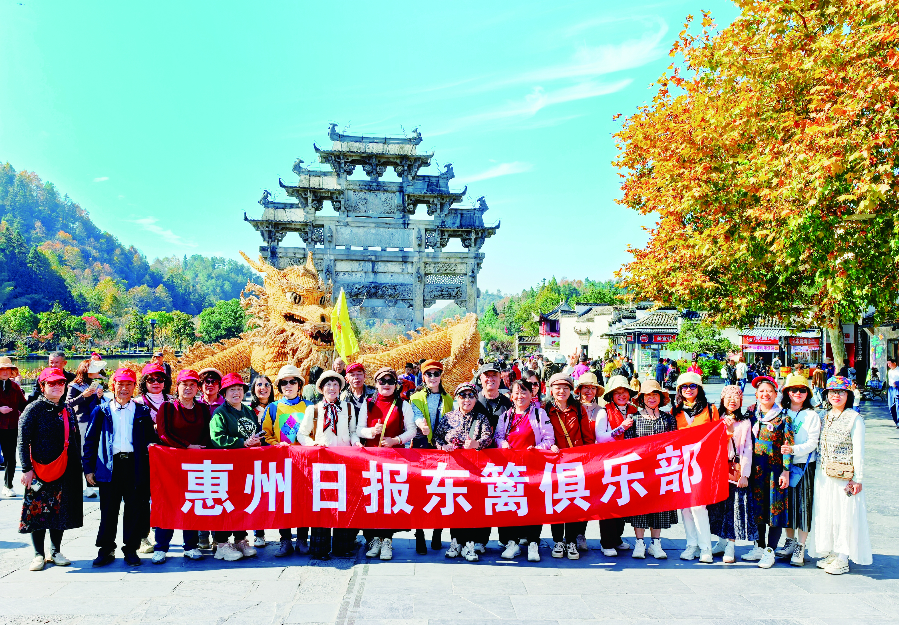 編者按:今年秋季,惠州日報國際旅行社精心策劃了一場“秋意徽州”之旅,帶領(lǐng)團(tuán)友們深入皖南腹地,探尋山水與人文交織的千年韻味。團(tuán)友丘向紅作為此行的親歷者,以飽含深情的筆觸,記錄下旅途的點滴感動與震撼。從宏村的畫橋倒影、塔川的漫山秋彩,到屯溪老街的煙火滋味、陽產(chǎn)土樓的煙雨朦朧,再到黃山的冰晶與霧凇、龍川宗祠的人文古韻,每一處景致都讓她沉醉,每一段經(jīng)歷都讓她動容。這場旅程不僅讓她領(lǐng)略了徽州的自然之美與歷史厚重,更在團(tuán)隊互助中收獲了溫暖與成就感,F(xiàn)在,就讓我們循著她的文字,一同走進(jìn)這片詩意土地,沉浸式感受徽州的美麗景致與人文溫度。